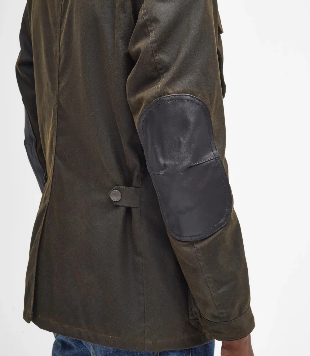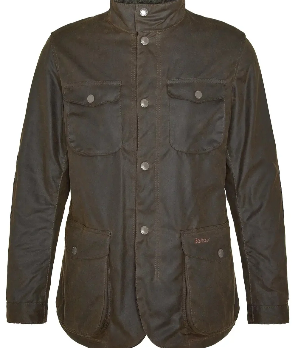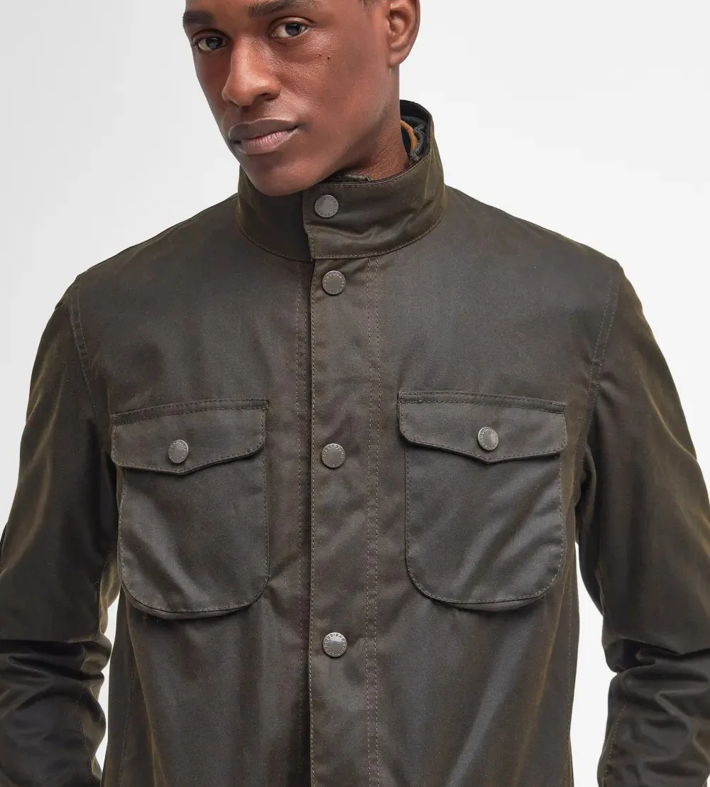 Giacca uomo verde oliva elegante e raffinata, รจ un capo robusto, dal taglio maschile e rilassato, realizzato in cotone cerato, che offre una solida protezione dalle intemperie con una finitura opaca effetto camoscio. Il gilet trapuntato integrato crea un look outdoor e offre un ulteriore strato di calore, chiudendosi fino al collo alto con una zip con logo. La giacca esterna aggiunge ulteriore praticitร con robuste chiusure a bottone e quattro ampie tasche, oltre a dettagli distintivi come toppe in pelle sui gomiti e rivestimenti in velluto a coste. La lussuosa fodera aggiunge un tocco di eleganza e raffinatezza a questa robusta giacca invernale.