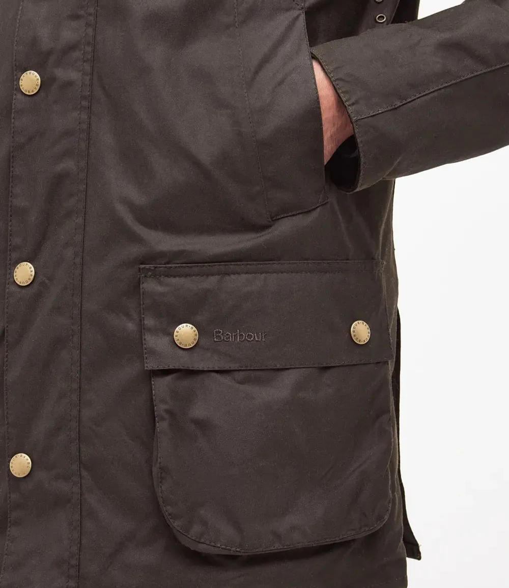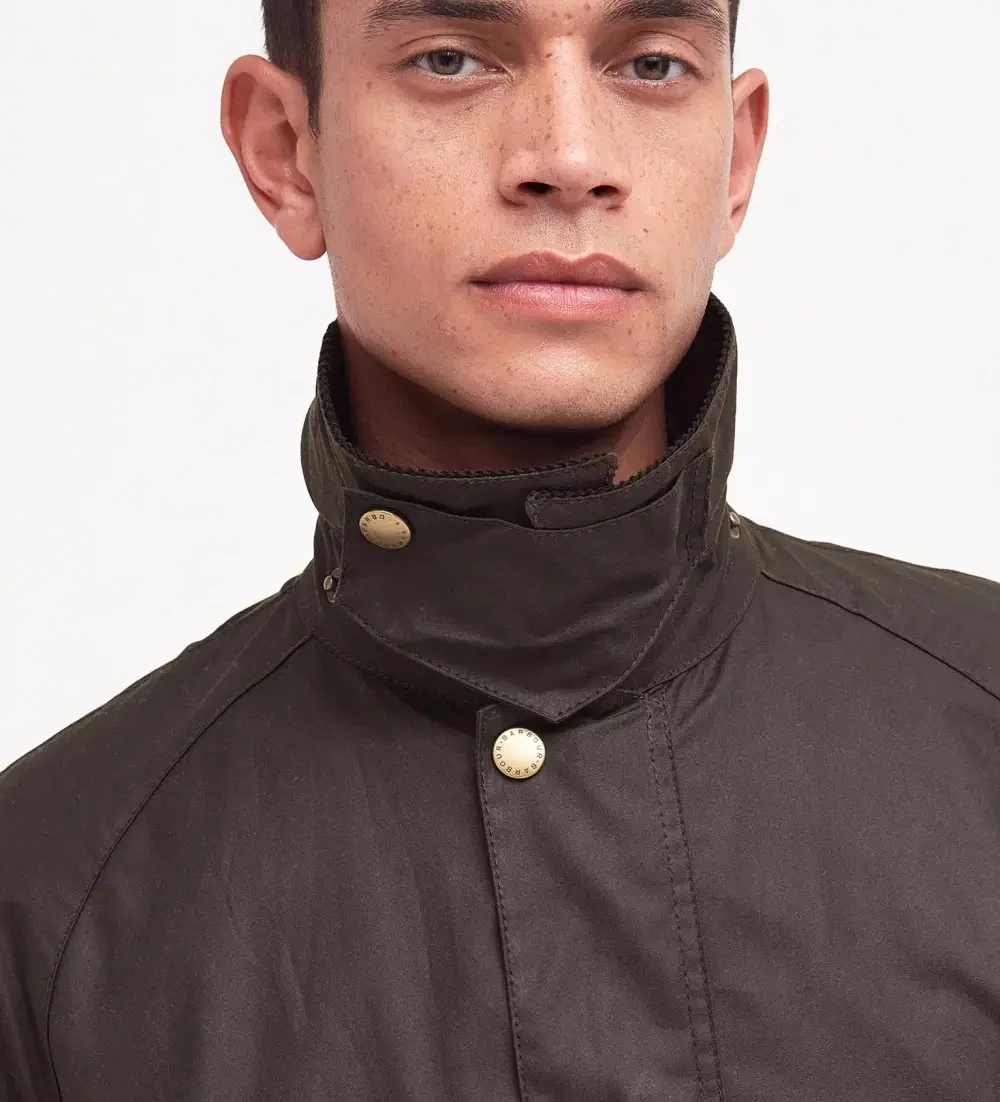 Giacca invernale da uomo verde oliva pratica ed elegante. Realizzata in cotone cerato, con finitura opaca e un tocco confortevole e vissuto. Leggermente sartoriale, ma che lascia comunque spazio per gli essenziali strati invernali, le caratteristiche classiche includono una patta antivento con robuste chiusure a bottone, un elegante collo a coste con cinturino sottogola, tasche scaldamani angolate e due ampie tasche a soffietto. Ispirato alla tradizione scozzese, l’iconico tartan rifinisce la fodera e le tasche interne, aggiungendo un’autenticitร inconfondibile. Questa giacca funzionale presenta una cerniera frontale interattiva ed รจ completamente compatibile con le fodere opzionali con cerniera di Barbour, rendendola incredibilmente versatile e ideale per l’uso quotidiano.
