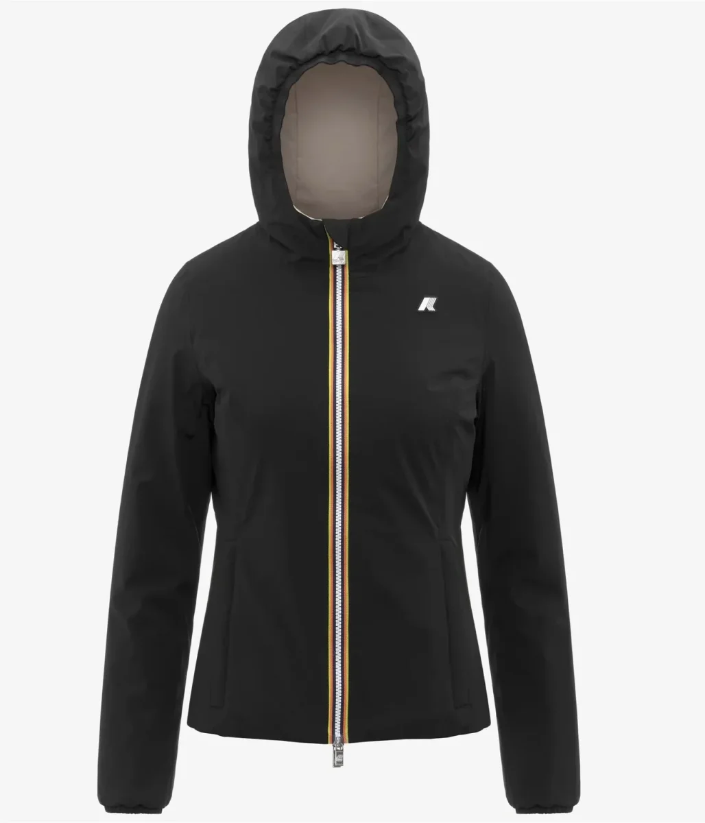Giubbino donna corto nero/beige dalla linea slim e design reversibile che moltiplica le occasioni d’uso perchรจ combina un lato in poliestere elasticizzato impermeabile e un lato in poliestere antivento dal colore a contrasto. L’imbottitura in ovatta offre un grado di calore medio, ideale per la mezza stagione, mentre le cuciture termonastrate isolano dal freddo e offrono maggiore comfort durante l’attivitร outdoor. Caratterizzato da cappuccio regolabile con corda elastica, chiusura con zip, polsi con elastico, due tasche con zip, due tasche con bottoni a pressione e logo in silicone bianco.