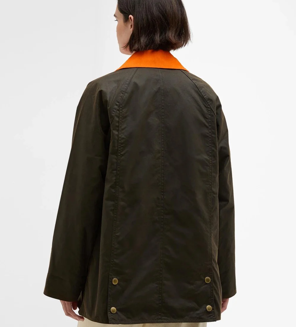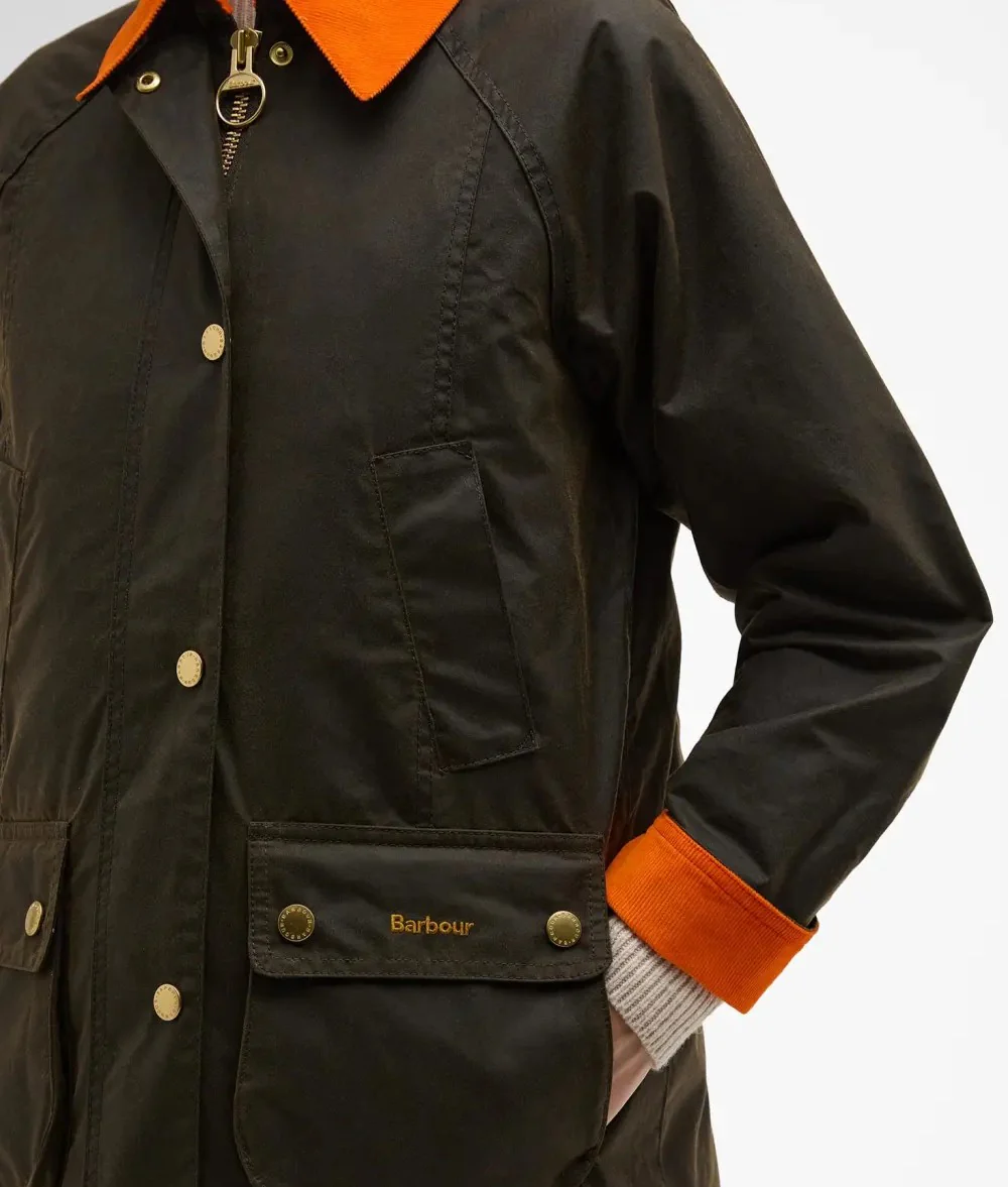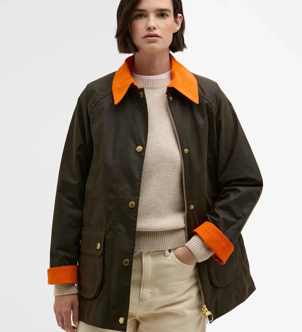 Giubbino donna oliva realizzato nel classico cotone cerato Thornproof, offre il mix perfetto di stile e praticitร . La silhouette che esalta la figura femminile รจ ispirata al leggendario Beadnell, mentre il vivace colletto in velluto a coste conferisce un tocco moderno a questo modello dal fascino classico. Caratterizzato da comode tasche scaldamani a borsa e da spacchi sulla parte posteriore per offrire ampia libertร di movimento, questo capospalla รจ iconico e versatile allo stesso tempo.