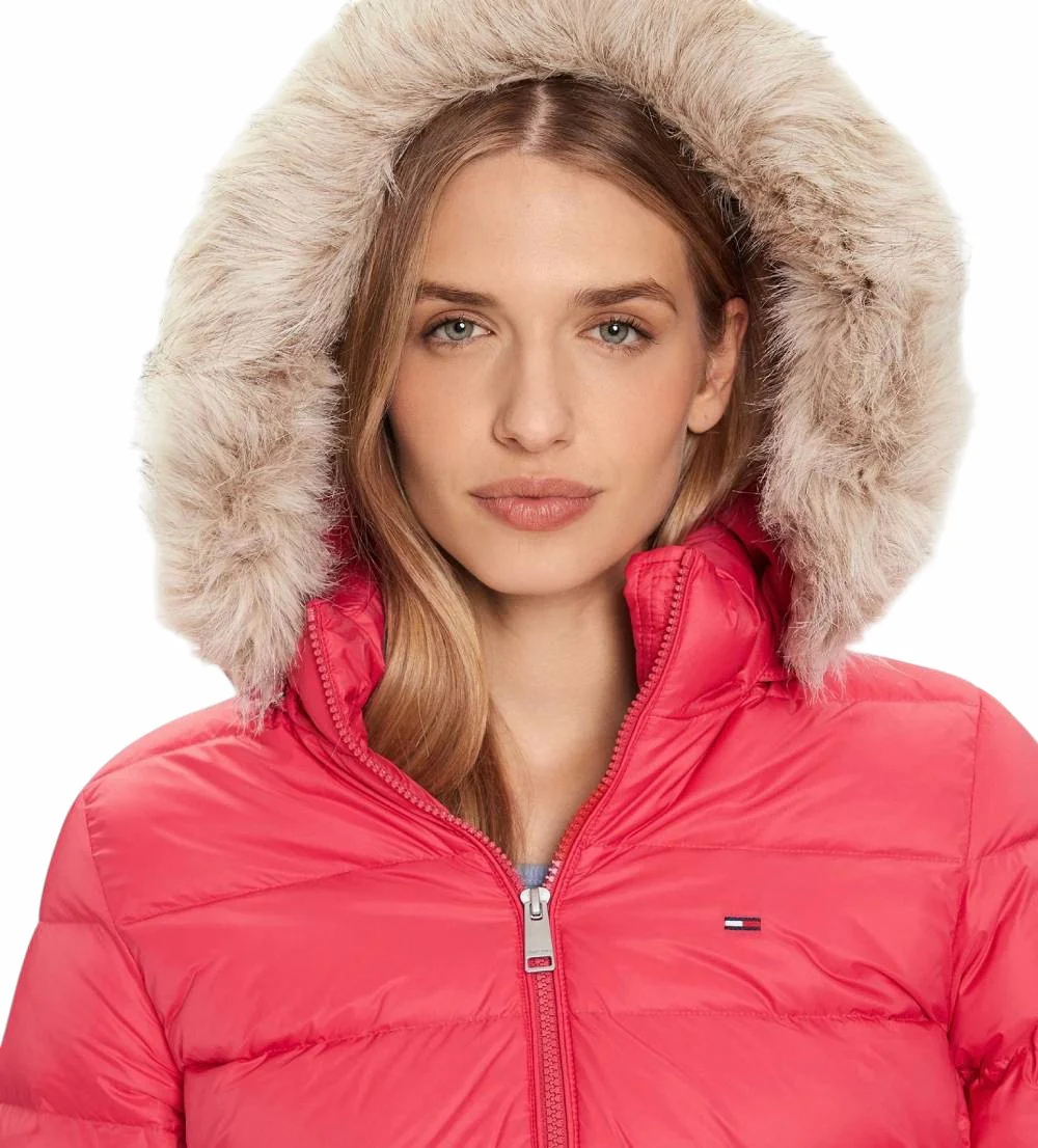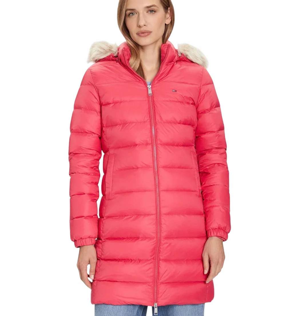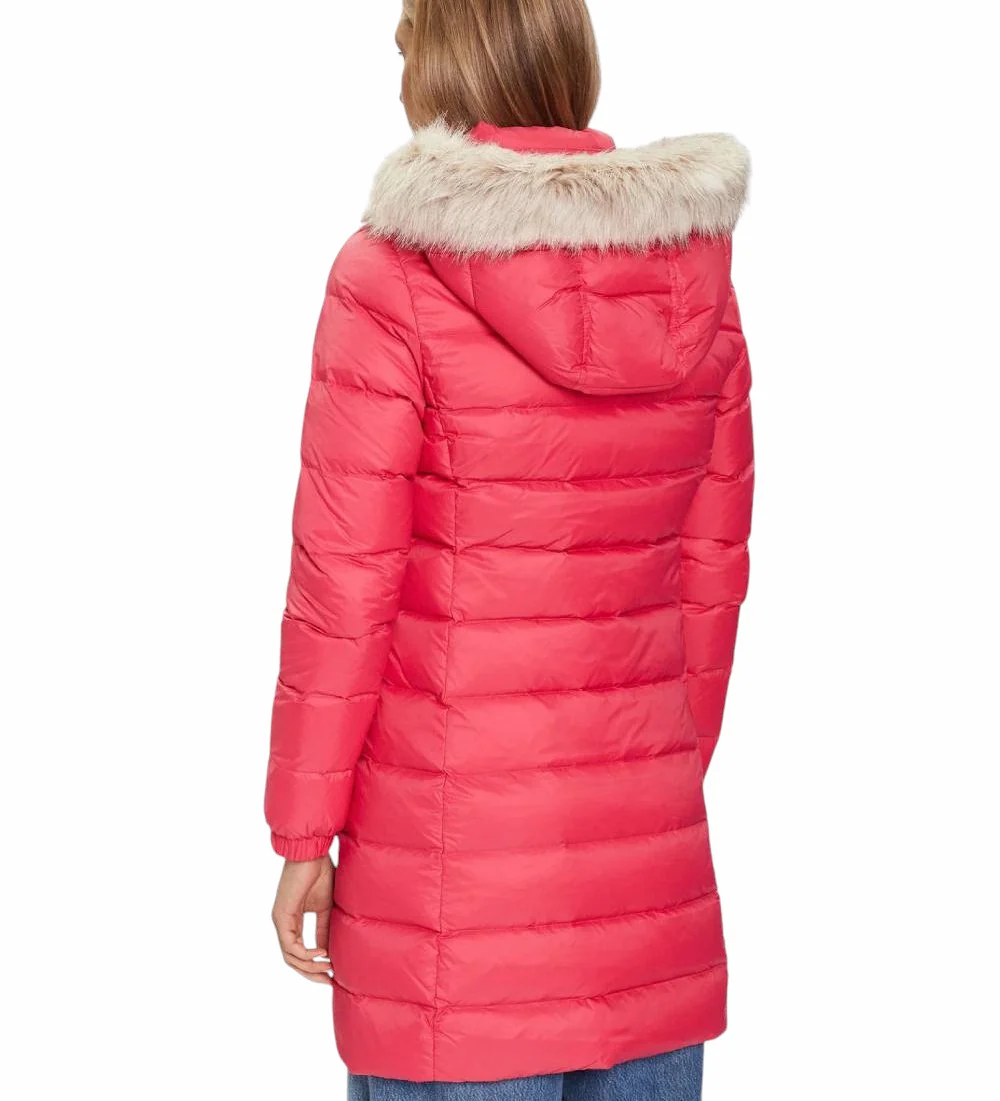Piumino donna lungo con finitura lucida e pelliccia sintetica rimovibile sul cappuccio, ideale per le giornate piรน ventose. Caratterizzato da finitura idrorepellente e imbottitura in piuma, collo a listino, zip integrale, due tasche ad angolo aperte in vita, polsini elastici e bandierina ricamata sul petto. Vestibilitร slim.