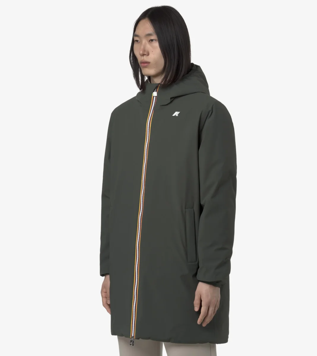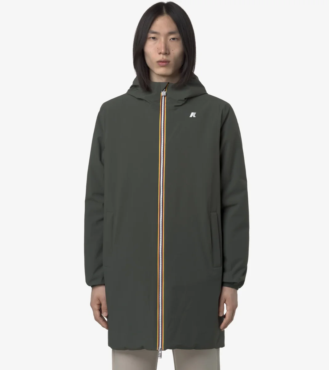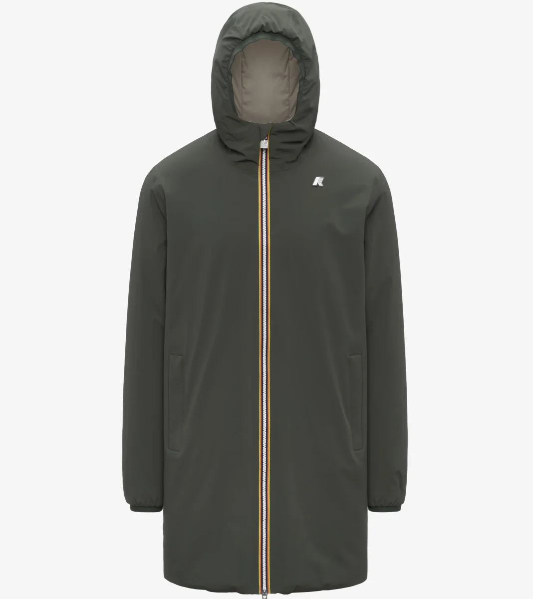 Giubbino a tre quarti da uomo verde/beige รจ la proposta K-Way per la mezza stagione e i primi giorni di freddo. Il modello combina stile e funzionalitร e si adatta a diversi abbinamenti e occasioni d’uso grazie al design reversibile. L’esterno รจ realizzato in poliestere elasticizzato impermeabile, mentre l’interno รจ rifinito in poliestere antivento dal colore a contrasto. Il comfort รจ assicurato dall’imbottitura in ovatta che offre un grado di calore medio e dalle cuciture termonastrate con un forte potere isolante. Caratterizzato da cappuccio regolabile con corda elastica, chiusura zip, polsi con elastico, due tasche con zip, due tasche con bottoni a pressione e logo in silicone bianco.
