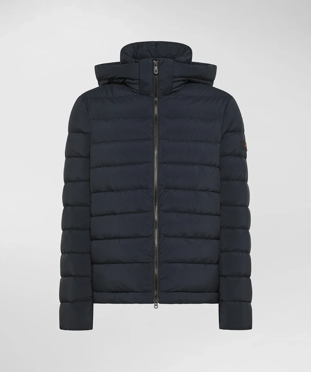 Piumino in nylon superleggero 20 denari, con finitura semiopaca e peso di soli 50 grammi. La trapunta esalta la linea essenziale del capo, pensato per offrire massima leggerezza e protezione. Lโimbottitura in piuma naturale certificata garantisce calore, traspirabilitร e comfort durante la stagione fredda. Il tessuto รจ water repellent e down proof, con trattamento idrorepellente privo di PFC (composti fluorurati), per una protezione efficace senza impiego di sostanze nocive. Il design รจ completato da un cappuccio staccabile regolabile, collo in piedi e dettagli neri – full zip centrale a doppio cursore, tasche laterali invisibili, polsini antivento – che sottolineano il carattere sportivo e versatile.