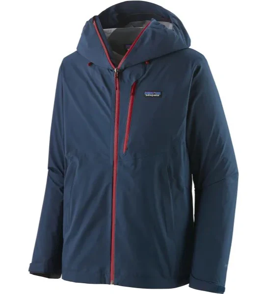 Giubbino uomo blu in 100% nylon ripstop riciclato, con rivestimento in jersey liscio, impermeabile e traspirante. Modello dalla vestibilitร classica, con cappa integrata, tasche per le mani e tasca sul petto con zip a contrasto.