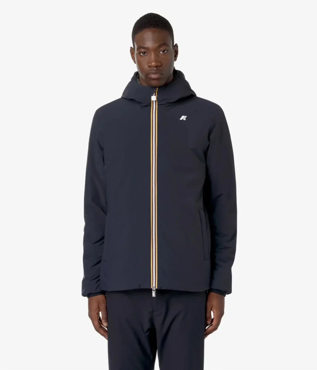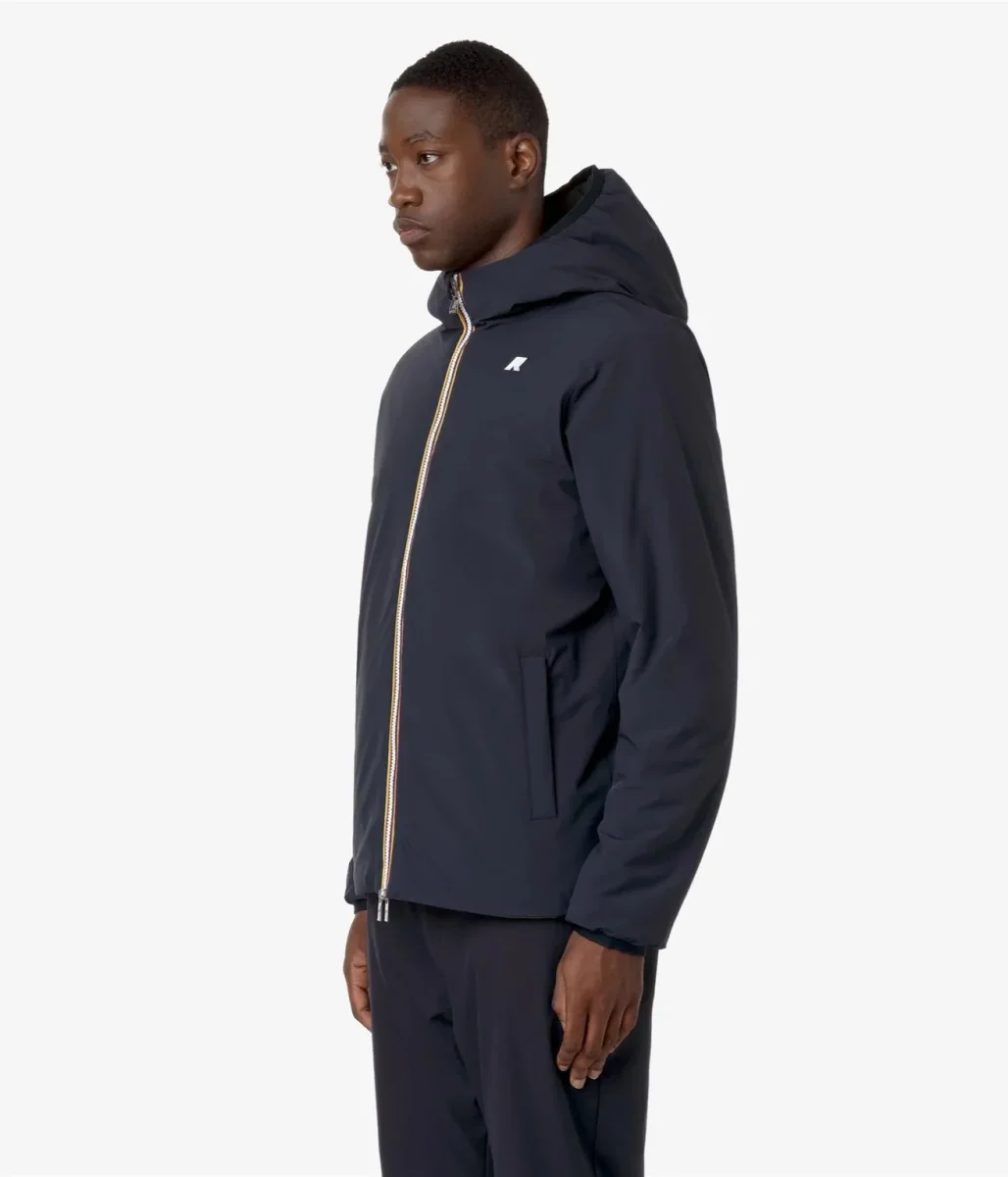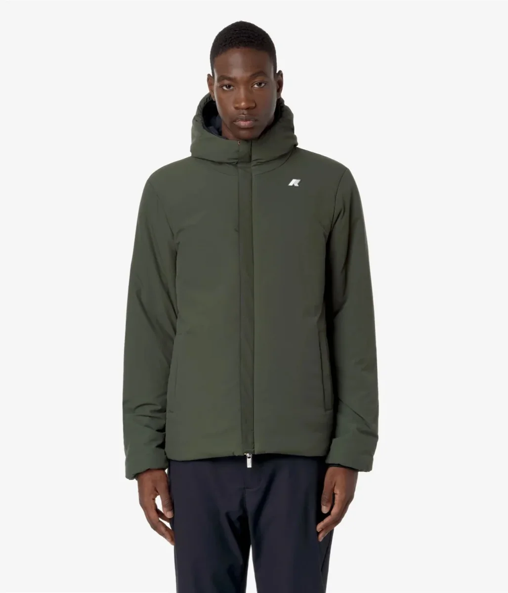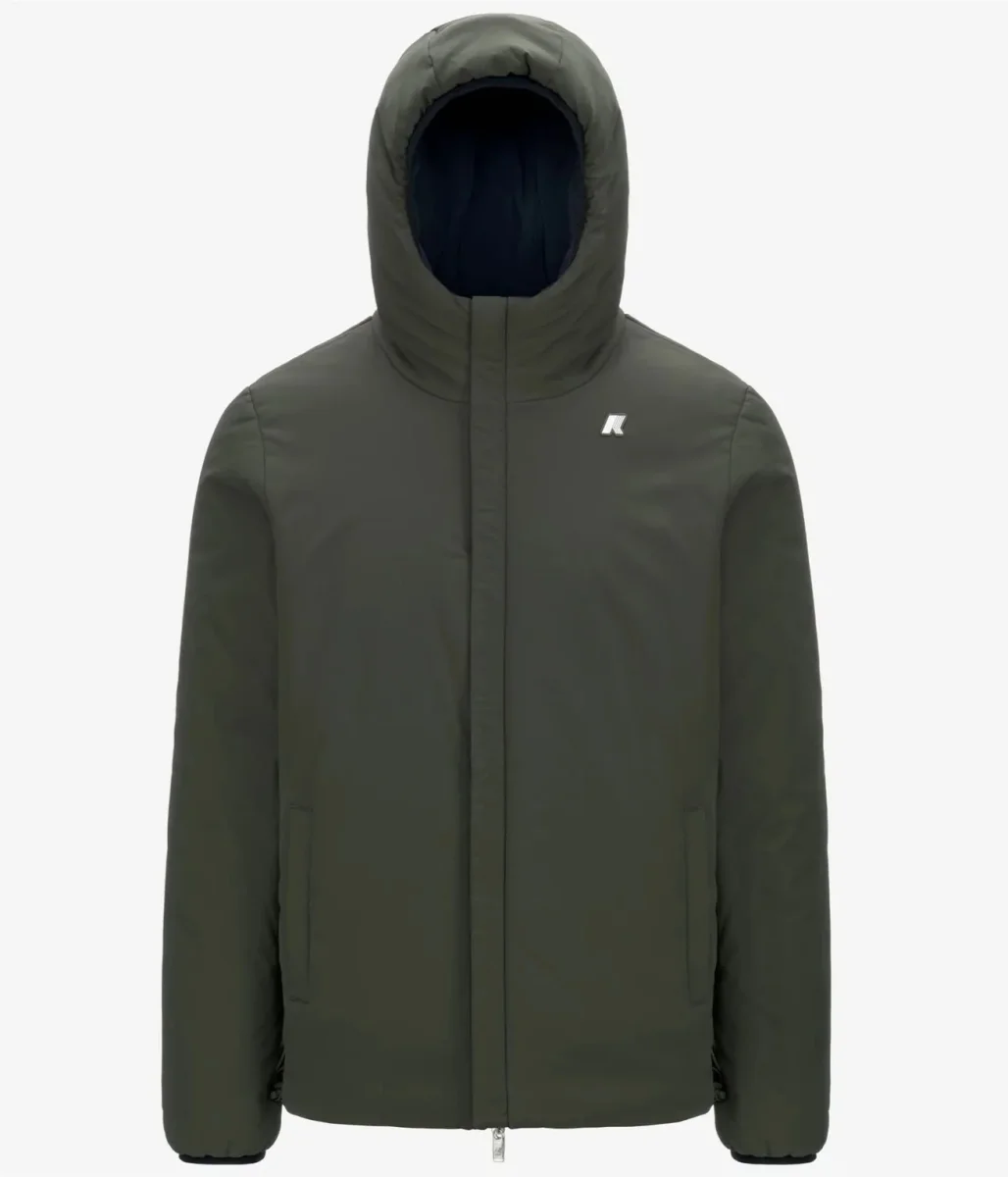 Giubbino corto uomo blu/ verde dalla linea slim e design reversibile che moltiplica le occasioni d’uso perchรจ combina un lato in poliestere elasticizzato impermeabile e un lato in poliestere antivento dal colore a contrasto. L’imbottitura in ovatta offre un grado di calore medio, ideale per la mezza stagione, mentre le cuciture termonastrate isolano dal freddo e offrono maggiore comfort durante l’attivitร outdoor. Caratterizzato da cappuccio regolabile con corda elastica, chiusura con zip, polsi con elastico, due tasche con zip, due tasche con bottoni a pressione e logo in silicone bianco.