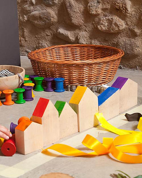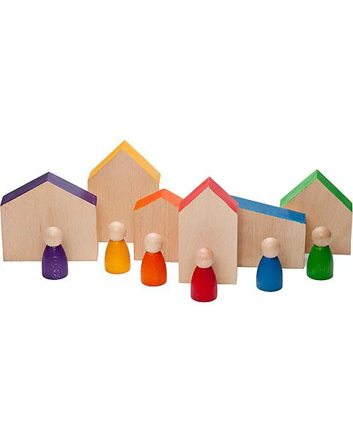 Il set include 6 casette e 6 omini nei colori dell’arcobaleno. Sono giochi senza regole che ispirano l’immaginazione dei piรน piccoli. Grazie a questi semplici ma bellissimi prodotti ecologici realizzati a mano in legno sostenibile, aiuteremo l’ambiente e i piรน piccoli ad inventare sempre giochi nuovi!