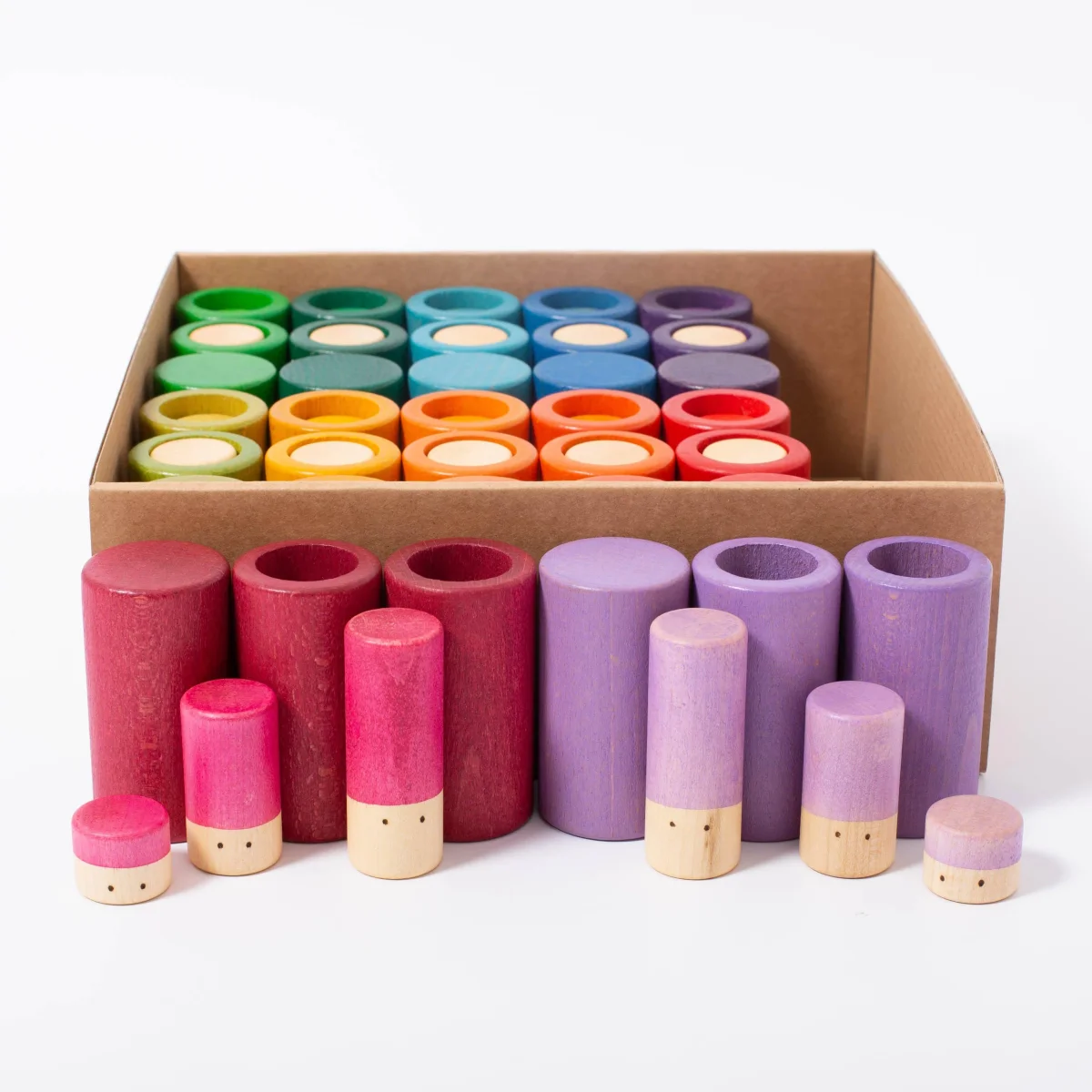 Set da 72 pezzi con 12 diversi colori dell’arcobaleno. Il set Lola include: 12 Lola grandi, 12 Lola medie, 12 Lola piccole, 12 tubi, 12 tubi solidi e 12 mezzi tubi