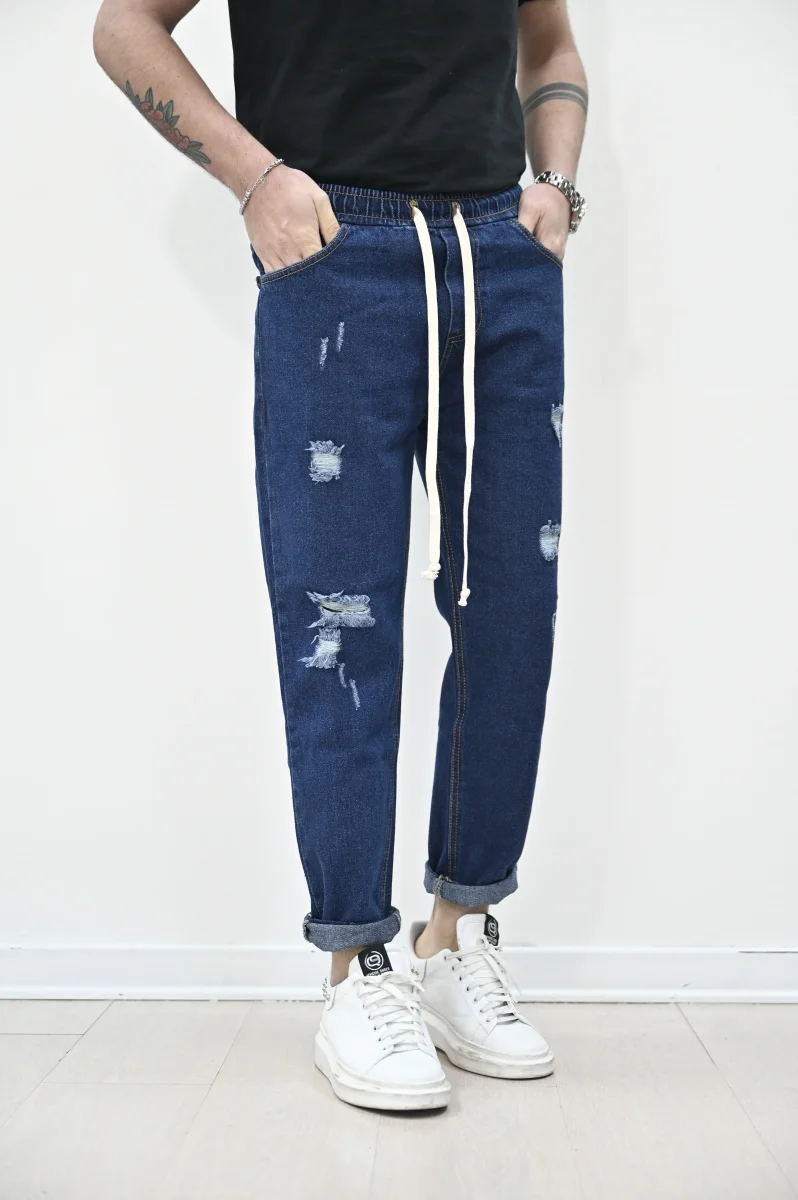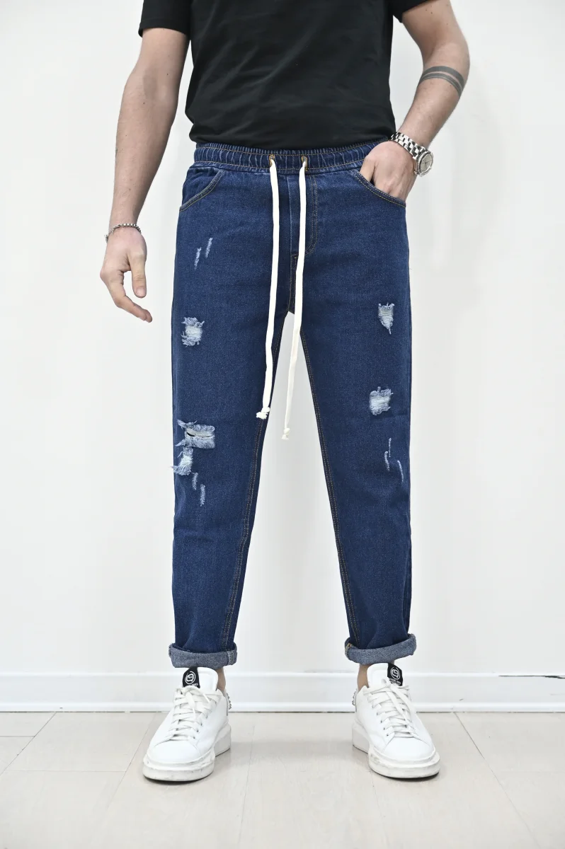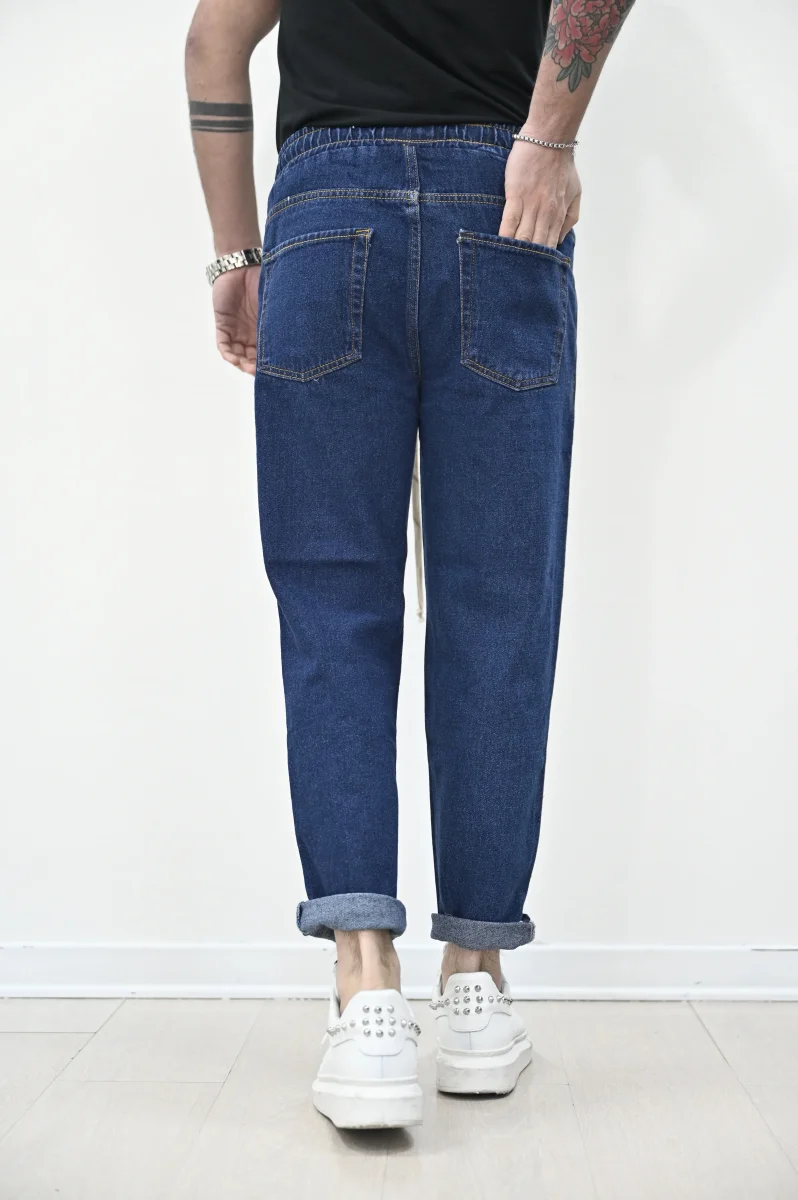 Il modello รจ alto 1,75 cm, pesa 73 kg e indossa una taglia M. Jeans jogger con elastico in vita Vestibilitร : Regolare Composizione: 100% cotone Realizzato in Italia