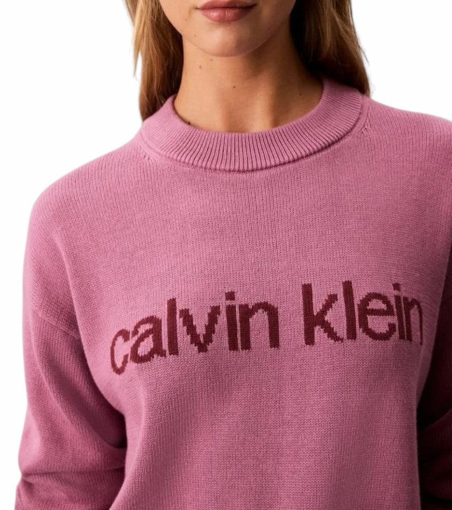 Maglia donna color glicine in cotone, modello manica lunga, girocollo con logo grafico sul davanti.