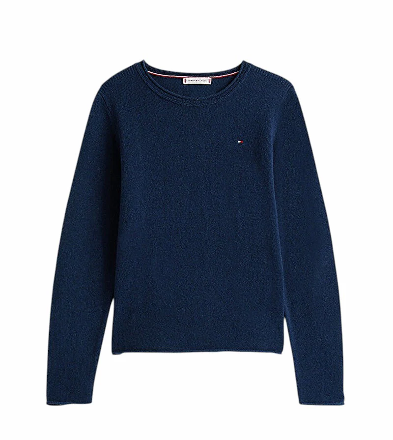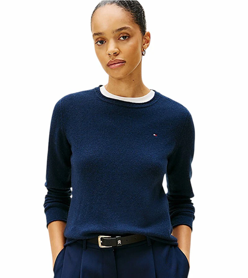 Maglia donna navy realizzata in pura lana, lavorta a maglia, dalla vestibilitร semplice e regolare con discreto logo ricamato sul petto.