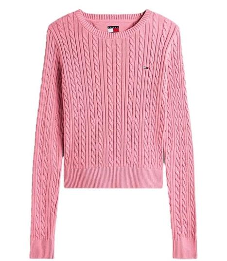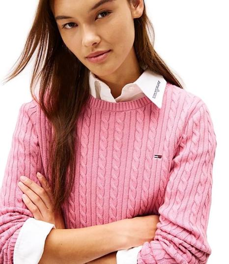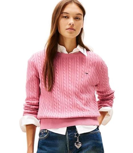 Maglia girocollo donna rosa realizzata in cotone, con lavorazione a trecce, girocollo, polsini e fondo a coste garantiscono una vestibilitร comoda, logo ricamato sul petto.
