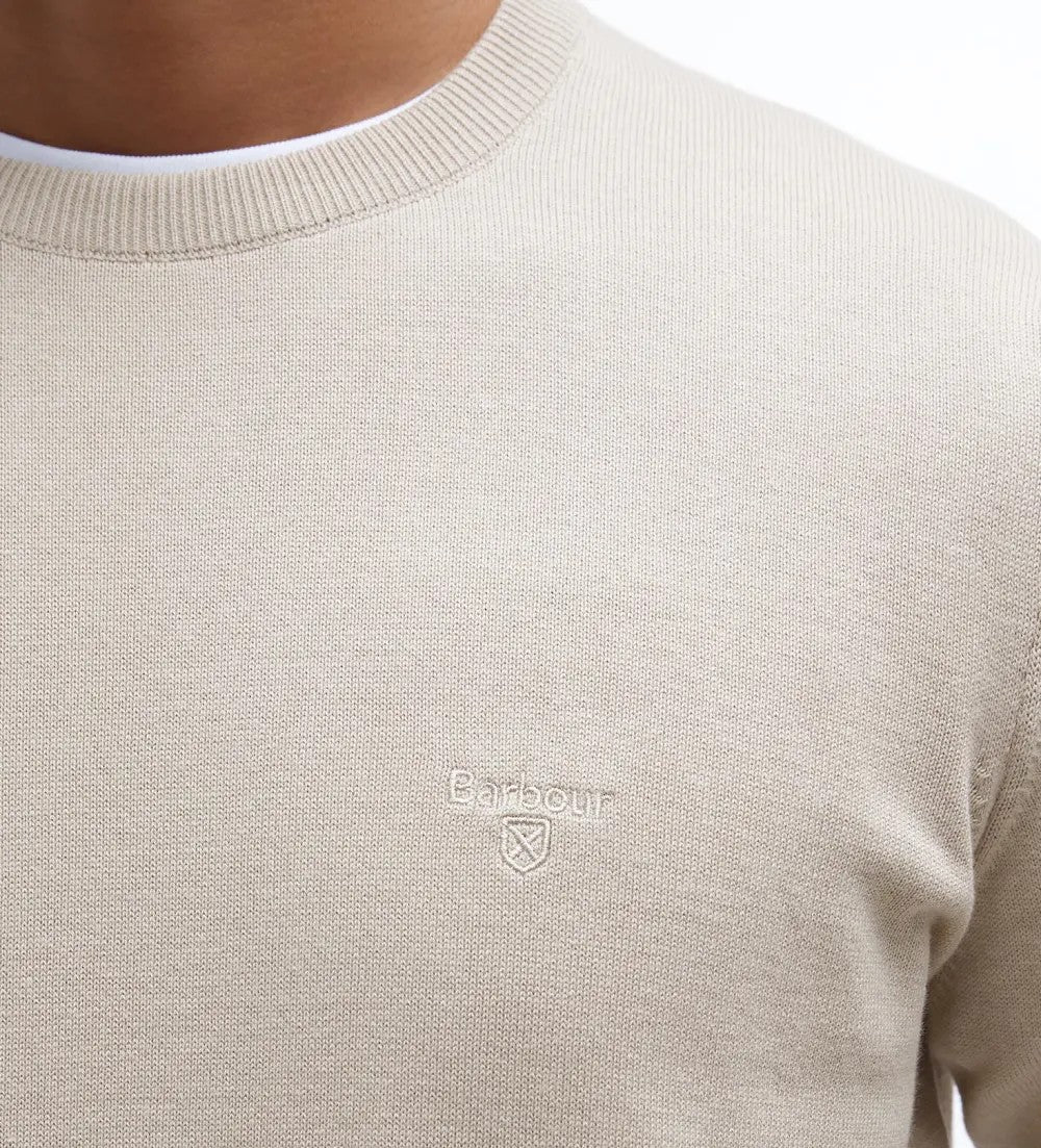 Maglia uomo beige in cotone a girocollo dal design elegante e casual. Caratterizzato da uno scollo arrotondato, rifinito con un ricamo del marchio sul lato sinistro del petto.