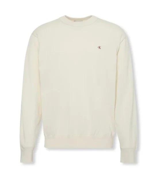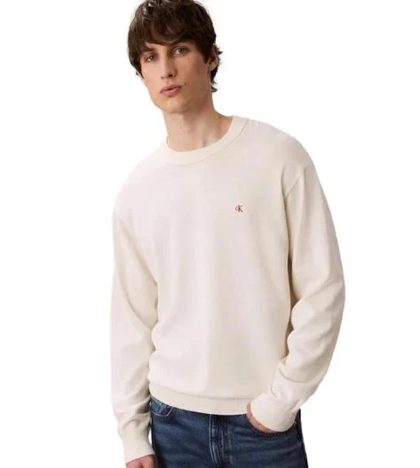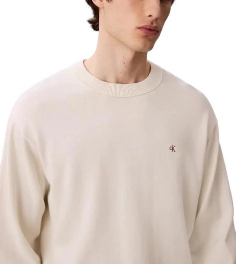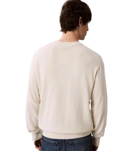 Maglia uomo bianca in cotone pettinato dalla vestibilitร rilassata, con scollo rotondo, collo, polsini e orlo a coste, logo monogramma ricamato sul petto.