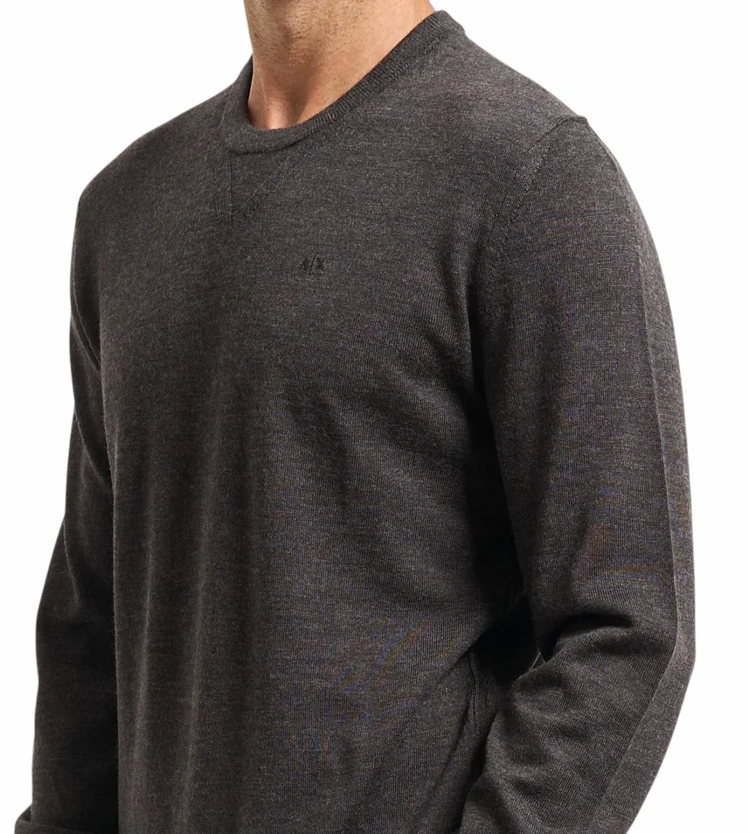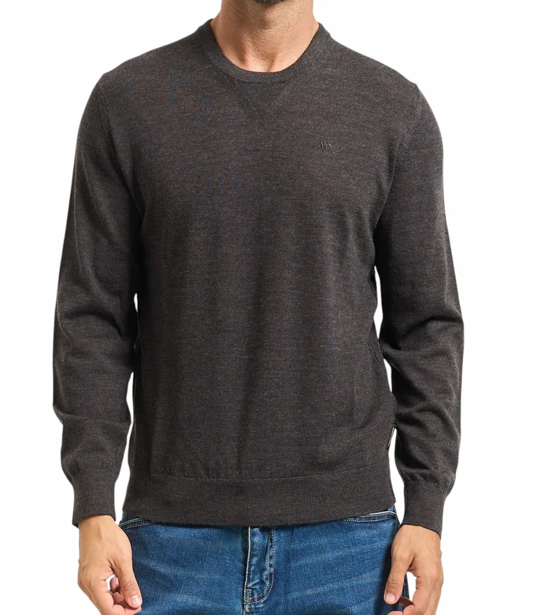 Maglia uomo fango in lana vergine, calda e versatile, presenta scollo tondo, logo ricamato sul petto e profili a costine.