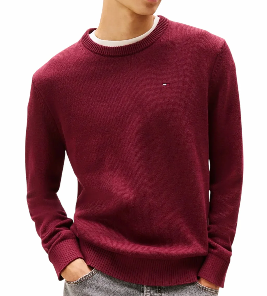 Maglia uomo rosso borgogna dal taglio regolare, lo scollo rotondo e i bordi a costine su polsini e orlo che offrono una vestibilitร confortevole e versatile. Logo ricamato sul petto.