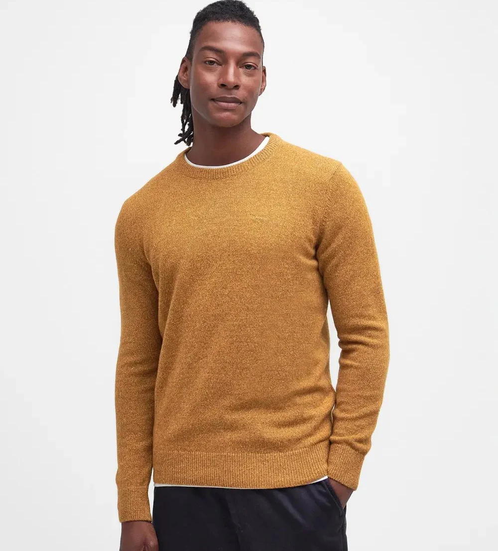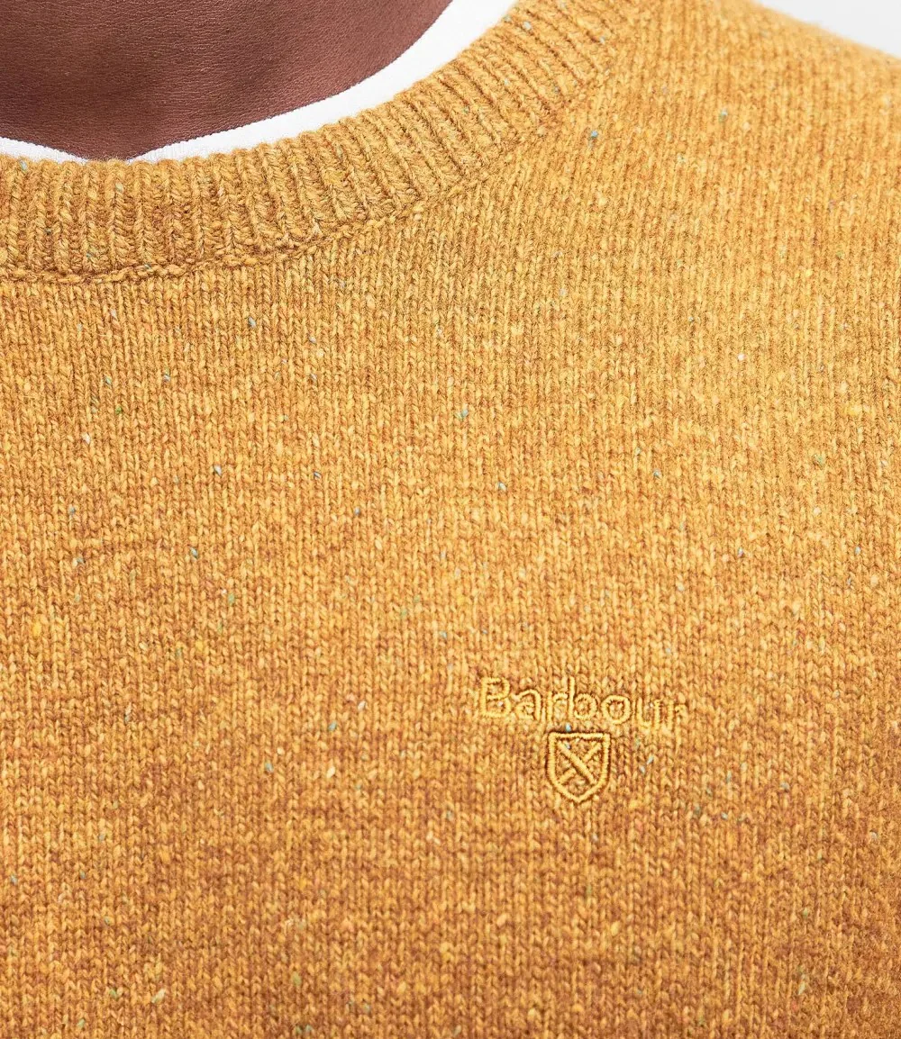 Maglia uomo senape in 100% lana per una sensazione di morbidezza e calore. Il classico capo a girocollo รจ caratterizzato da dettagli screziati all-over che conferiscono al capo un look elegante, mentre le maniche lunghe rendono questo strato ancora piรน accogliente. Logo ricamato sul petto.