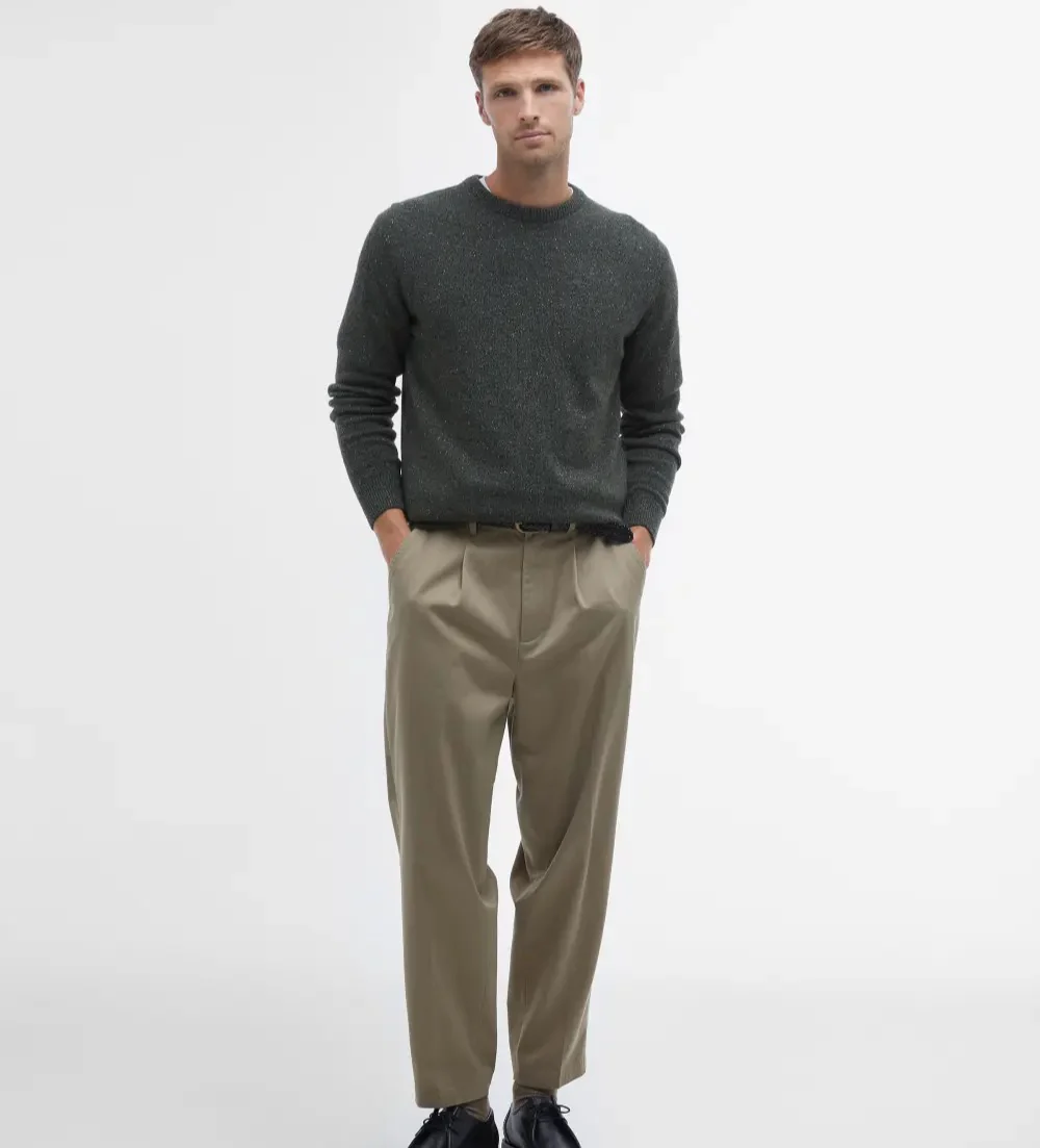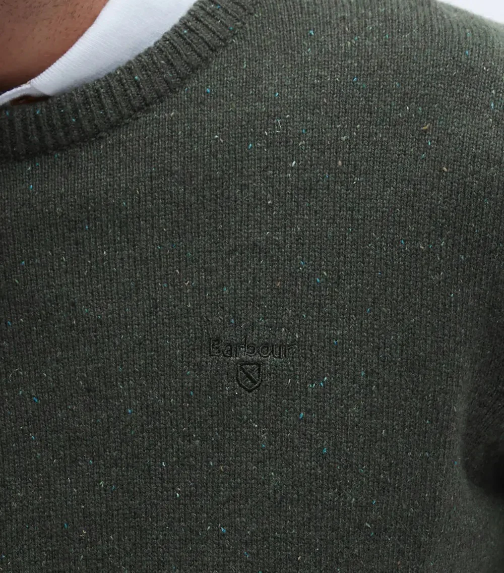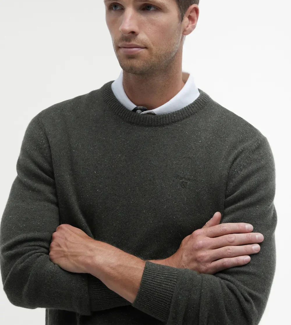 Maglia uomo verde militare in 100% lana per una sensazione di morbidezza e calore. Il classico capo a girocollo รจ caratterizzato da dettagli screziati all-over che conferiscono al capo un look elegante, mentre le maniche lunghe rendono questo strato ancora piรน accogliente. Logo ricamato sul petto.