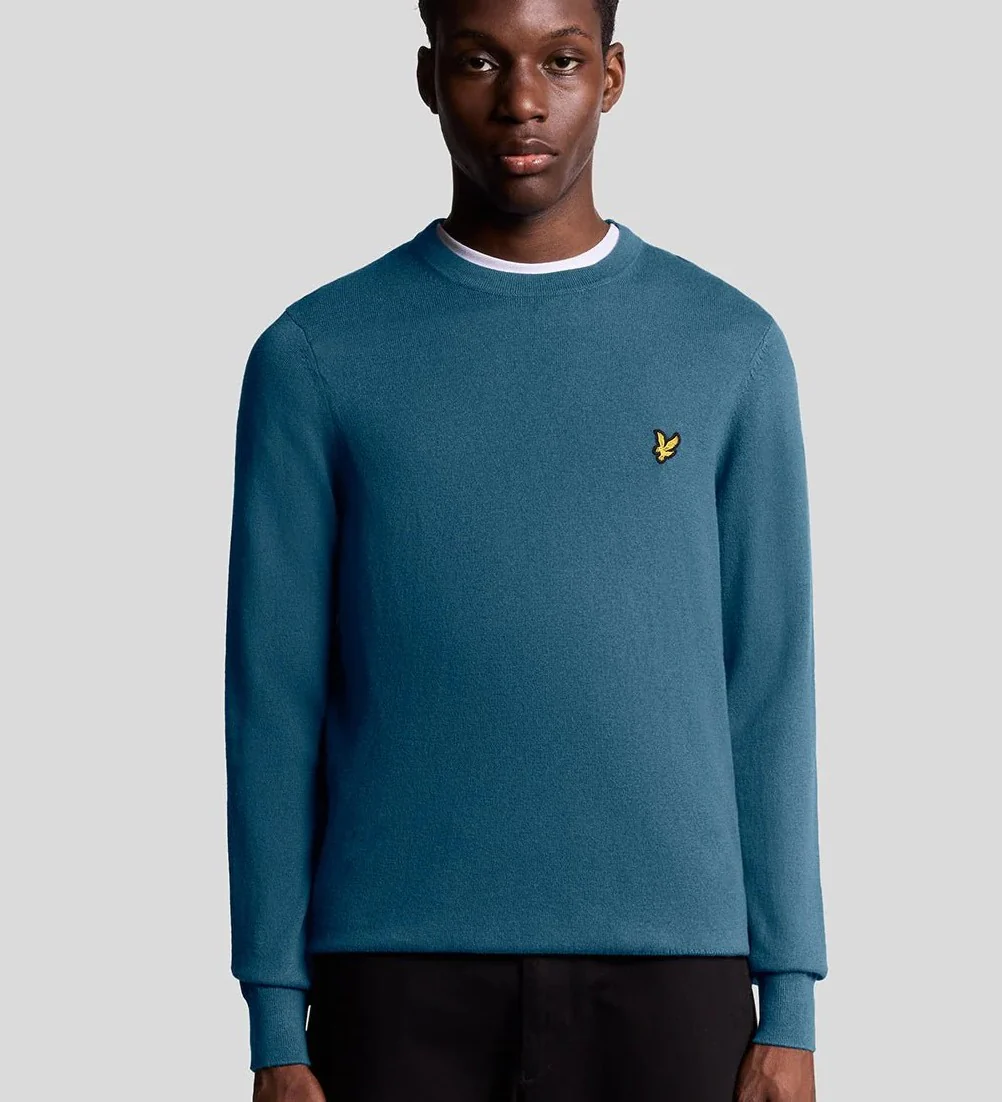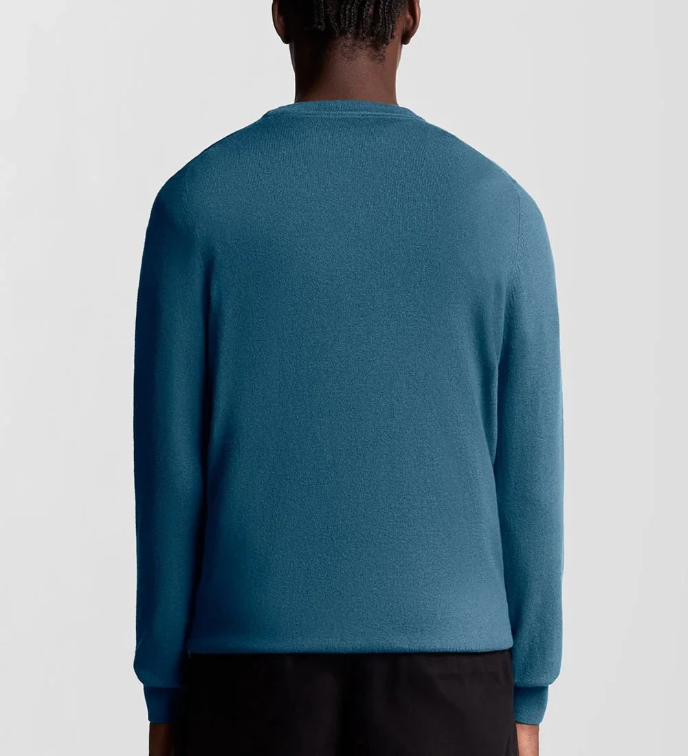 Maglione uomo blu, realizzato in una miscela di cotone e lana merino. Modello dal design tradizionale che offre comfort e calore traspirante, con scollo rotondo , polsini e orlo a coste, dalla vestibilitร regolare. Disponibile dalla taglia M alla XXL.