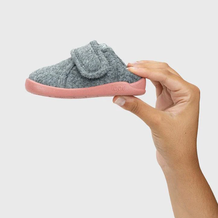 Igor Homie Pana Gris barefoot slippers are made of velvety textile. Learn more about barefoot shoes here.