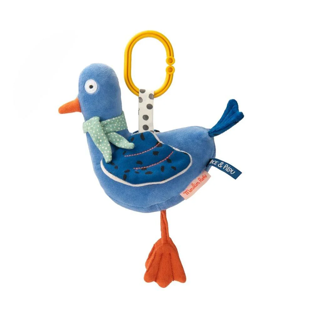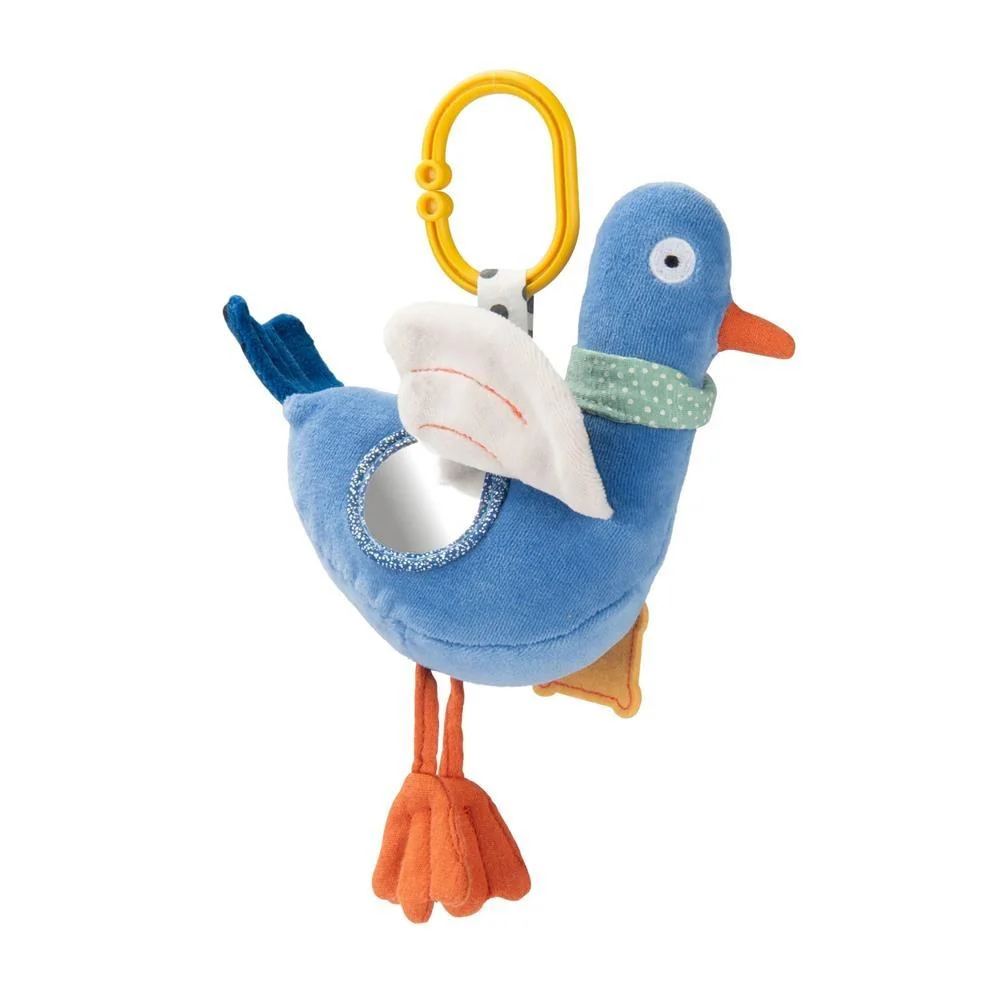 Michel, il piccione dalle mille sorprese! La coda che fa rumore, le sue piccole ali da afferrare, lo specchio per guardarsi… Facile da appendere. Dimensioni: 20 x 10 x 33 cm.