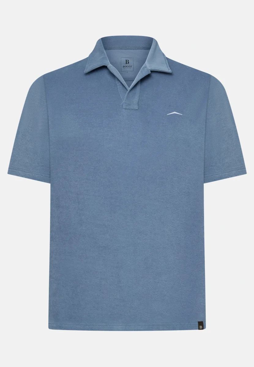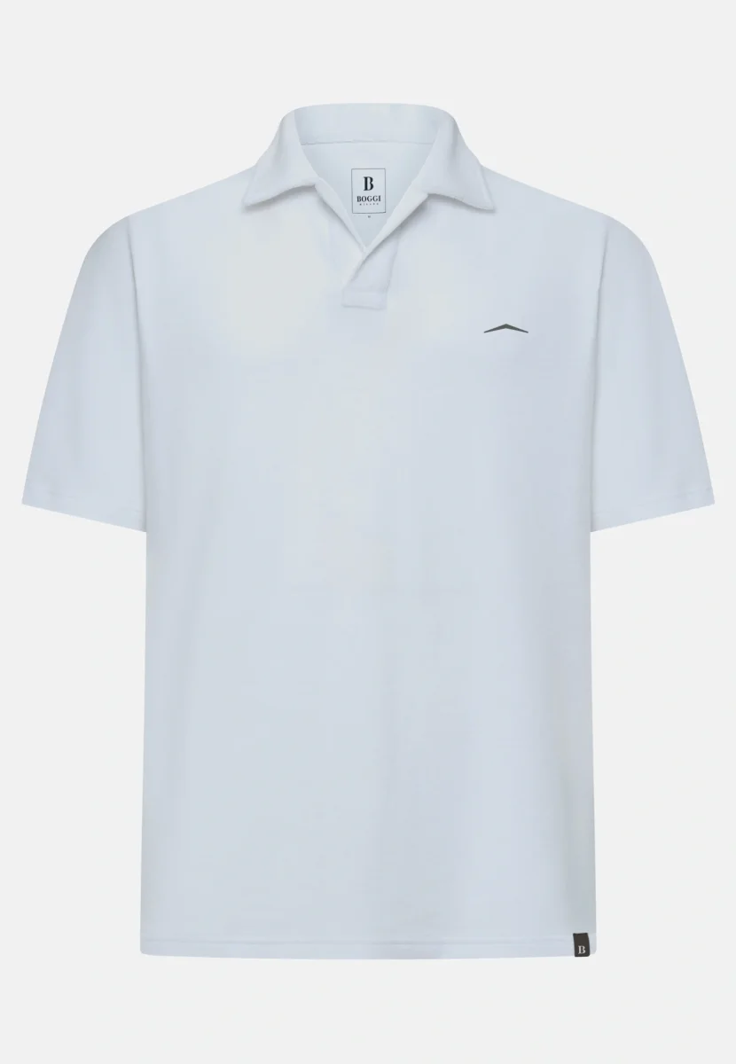 Polo in piquรฉ di cotone e nylon con design senza bottoni, dettagli a contrasto sul colletto, inserti melange a righe e ricamo del logo Boggi B.