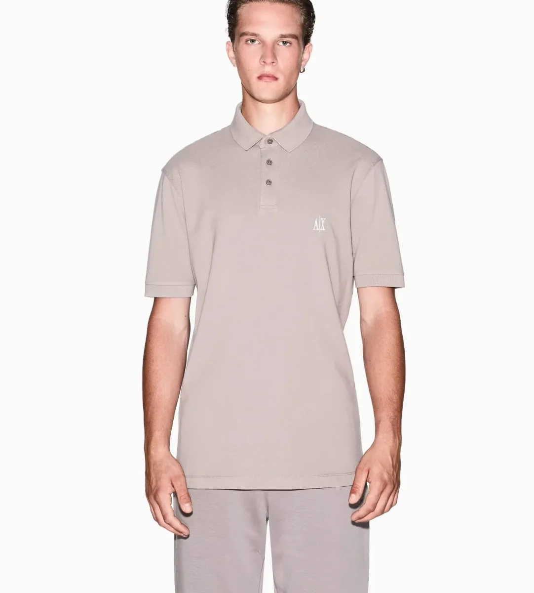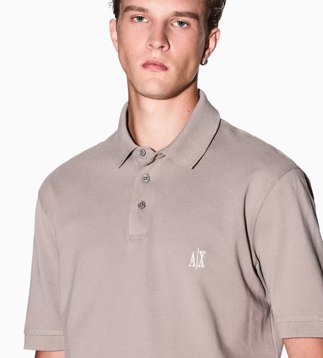 Polo uomo beige a maniche corte realizzata in piquรฉ di cotone dal design semplice e classico, impreziosito dal logo ricamato sul petto, che aggiunge un tocco discreto e raffinato. Vestibilitร  regolare