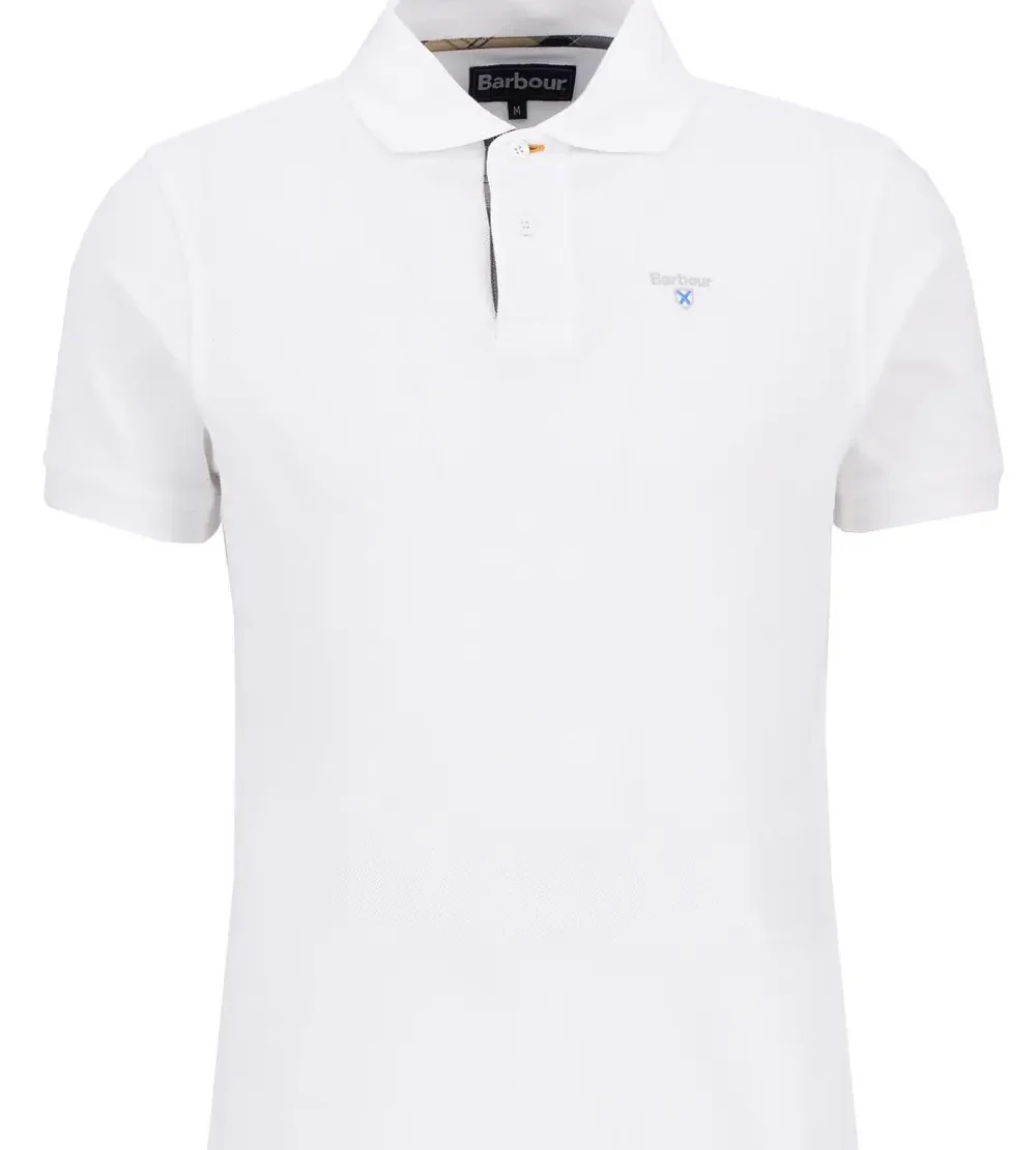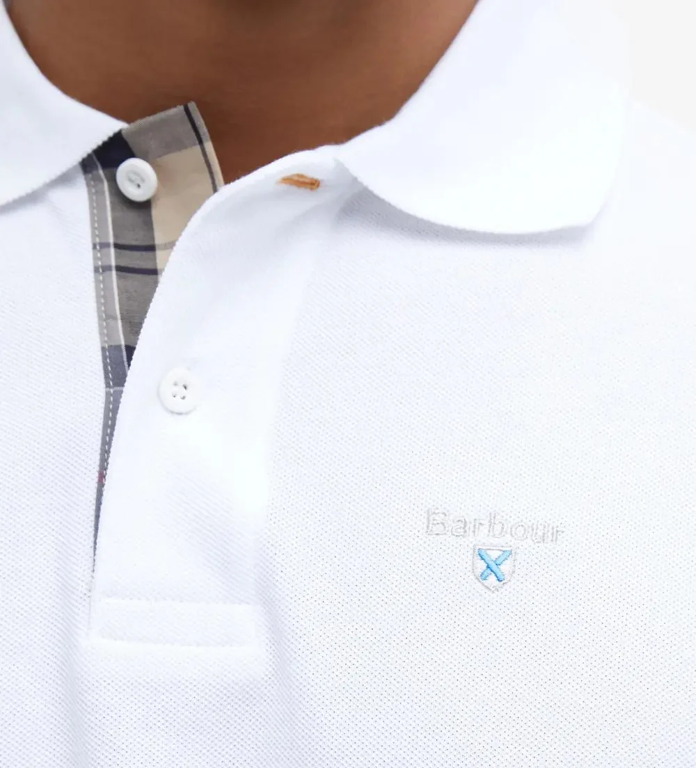 Polo uomo bianca in cotone รจ caratterizzato da maniche corte, finiture tartan sul retro del collo e logo sul petto per un tocco di classe. Disponibile dalla taglia L alla XXXL.