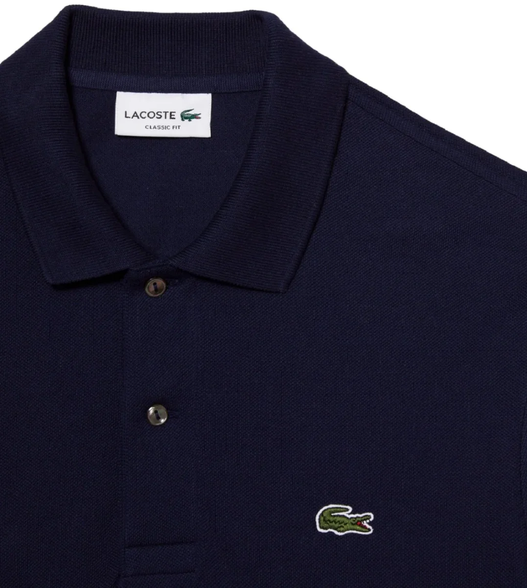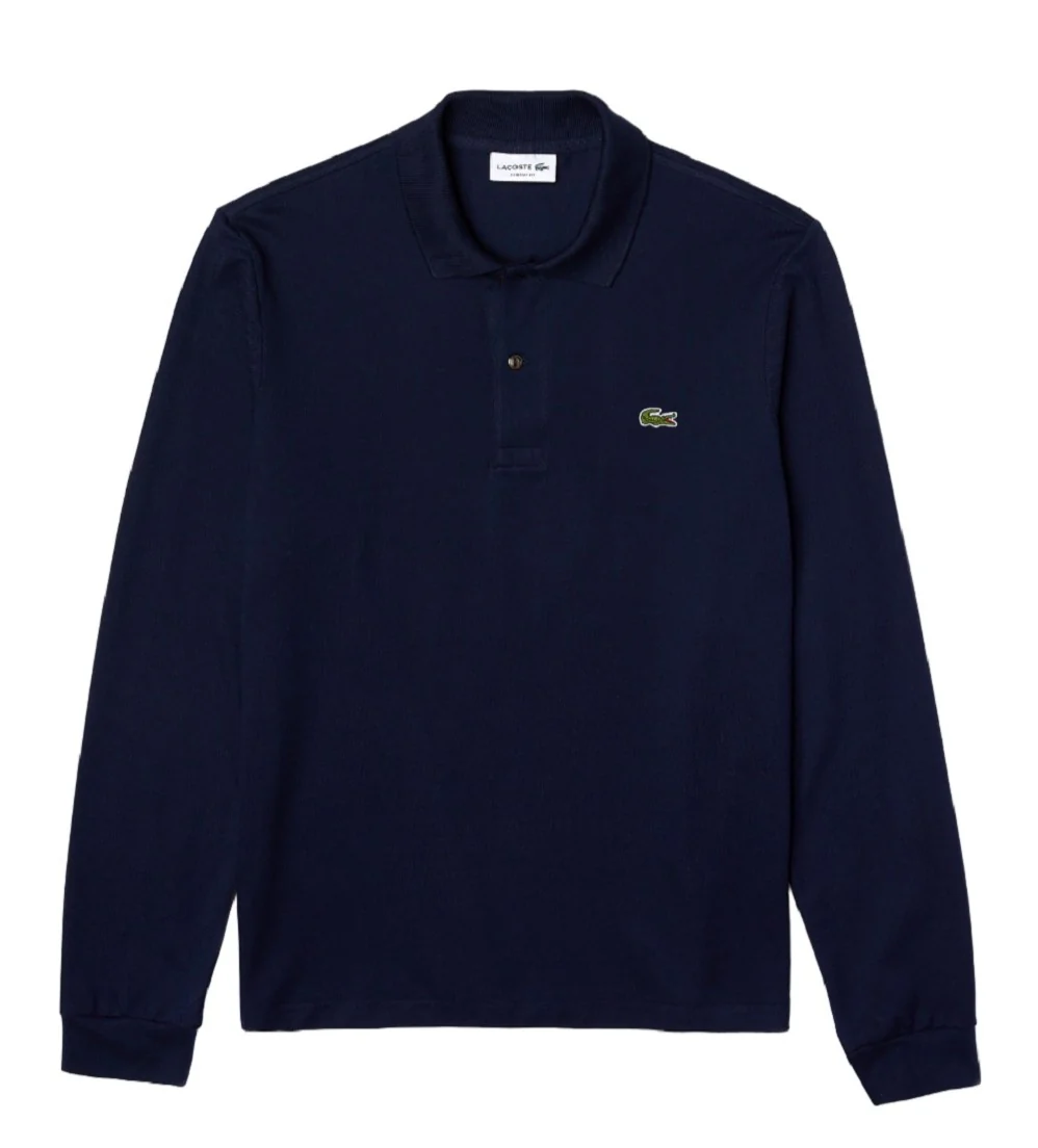 Polo maniche lunghe da uomo, blu navy in spesso piquรจ di cotone. Modello dal taglio classico con collo a due bottoni, bordi a costine su collo e maniche e bottoni madreperla.