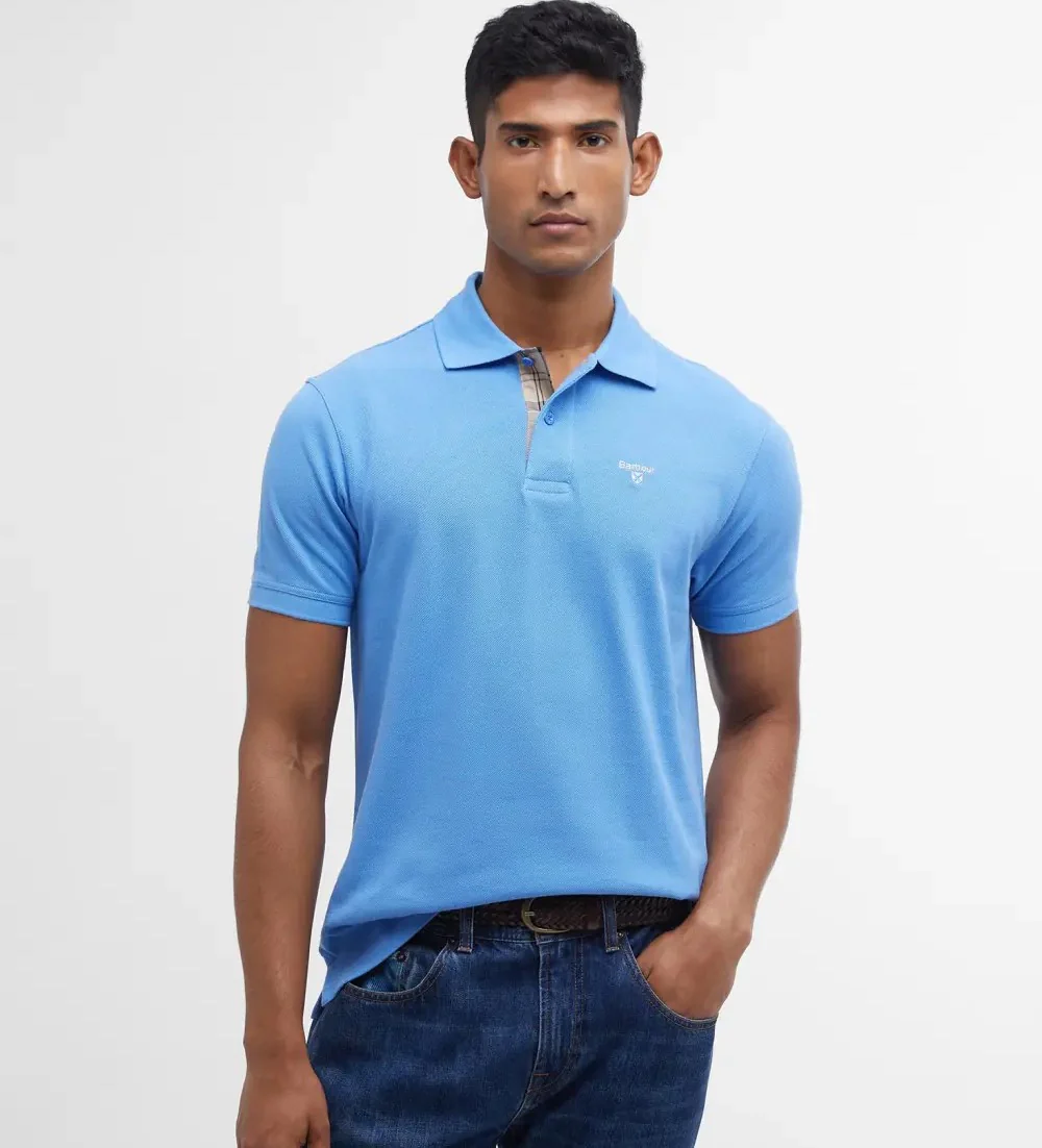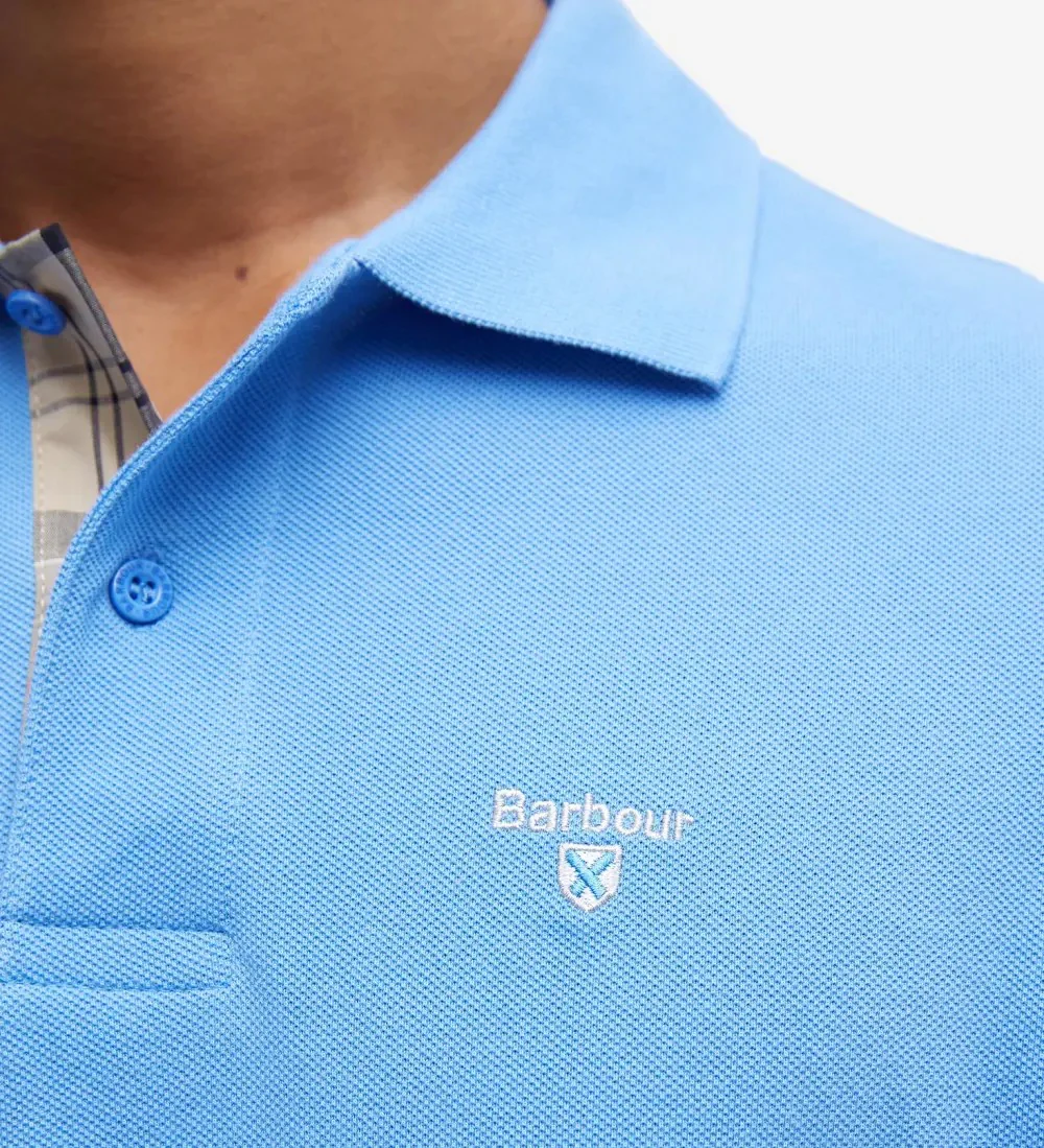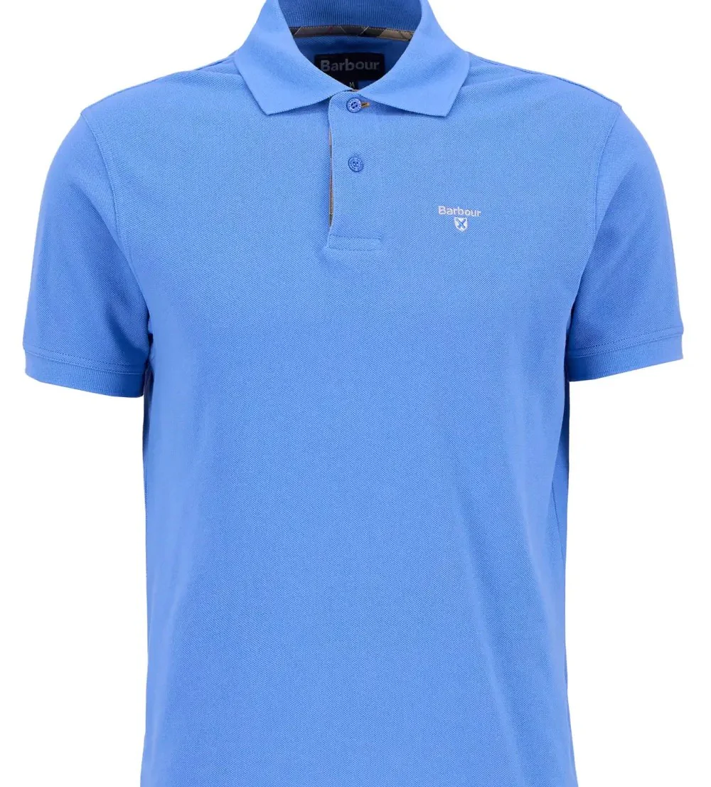 Polo uomo celeste in cotone รจ caratterizzato da maniche corte, finiture tartan sul retro del collo e logo sul petto per un tocco di classe. Disponibile nelle taglie dalla M alla XXXL.