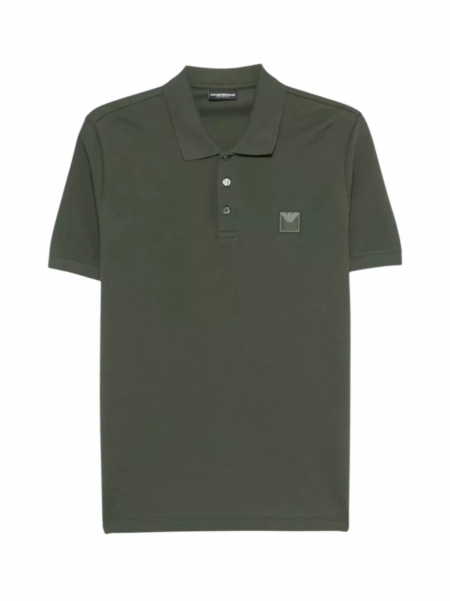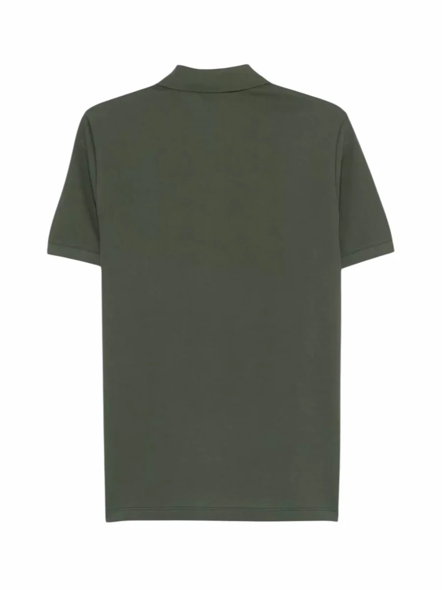Polo uomo verde felce in cotone con logo, presenta spacchi laterali corti, colletto polo e polsini a coste.