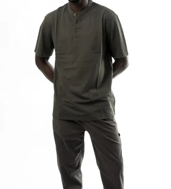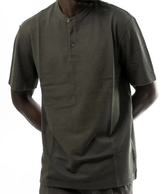 Polo uomo verde militare realizzata in piquรฉ di puro cotone, questa polo unisce freschezza e stile in un design essenziale. Il colletto alla coreana aggiunge un tocco moderno e raffinato, mentre le maniche corte la rendono perfetta per la stagione calda. Morbida e traspirante. Disponibile dall taglia XS alla XL.