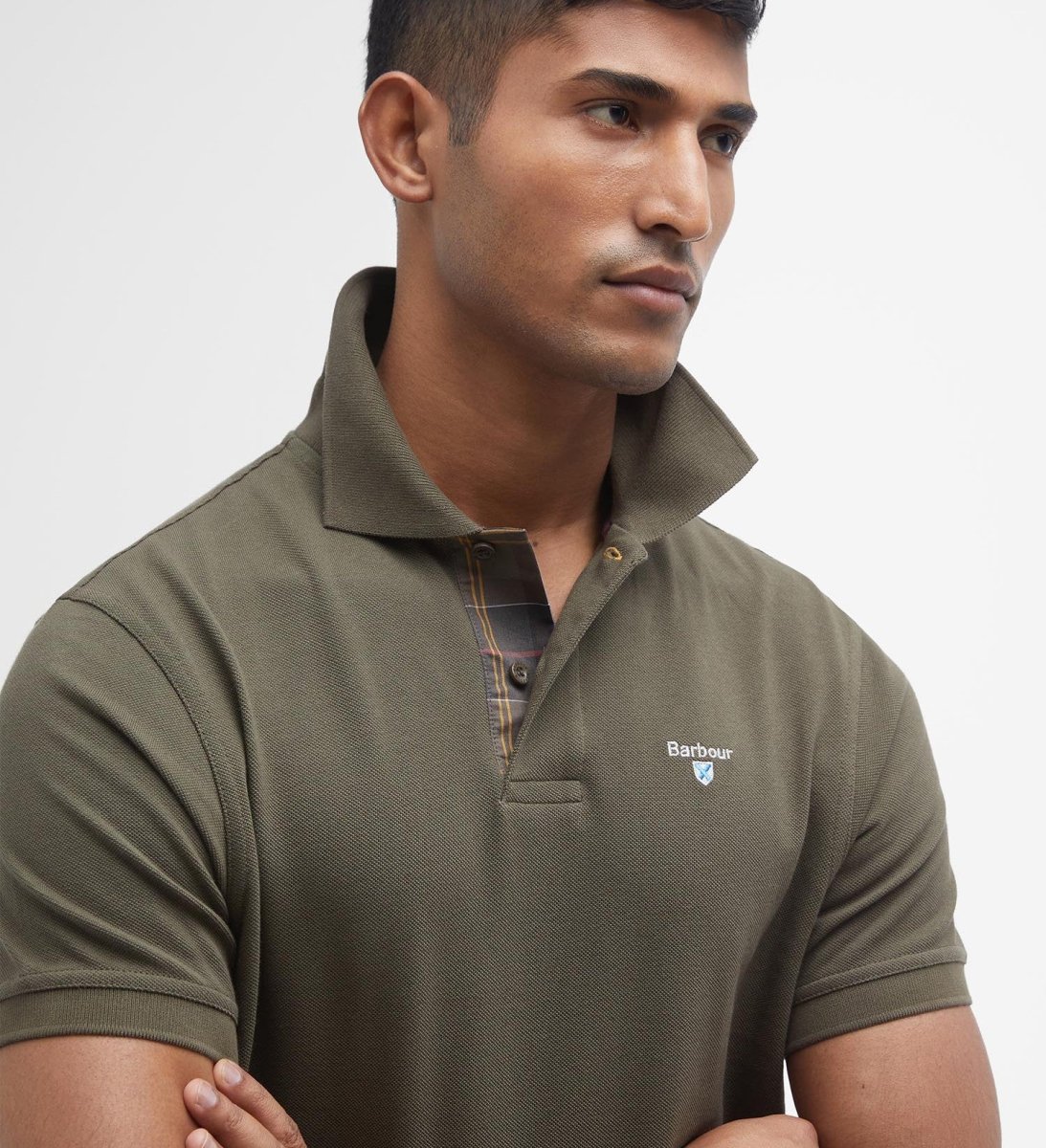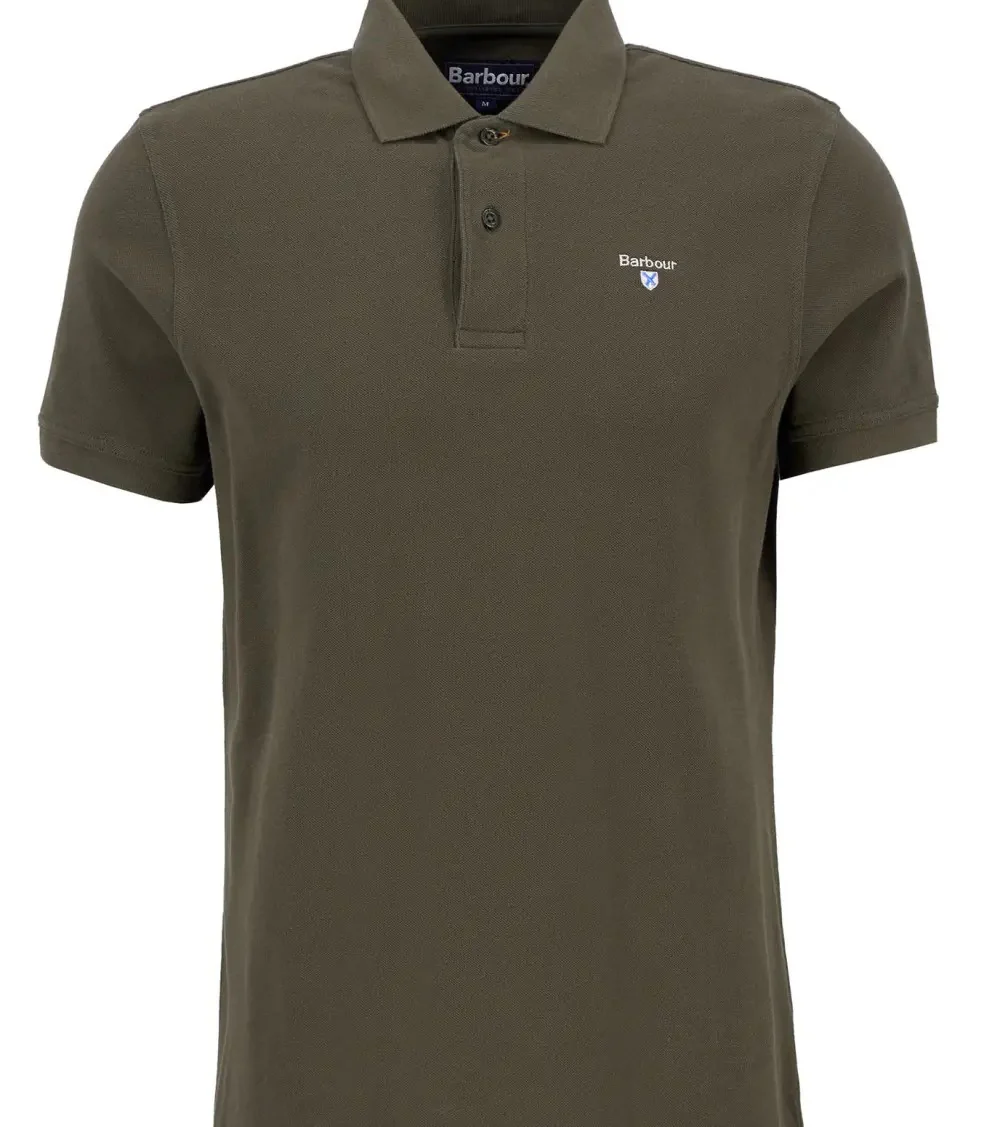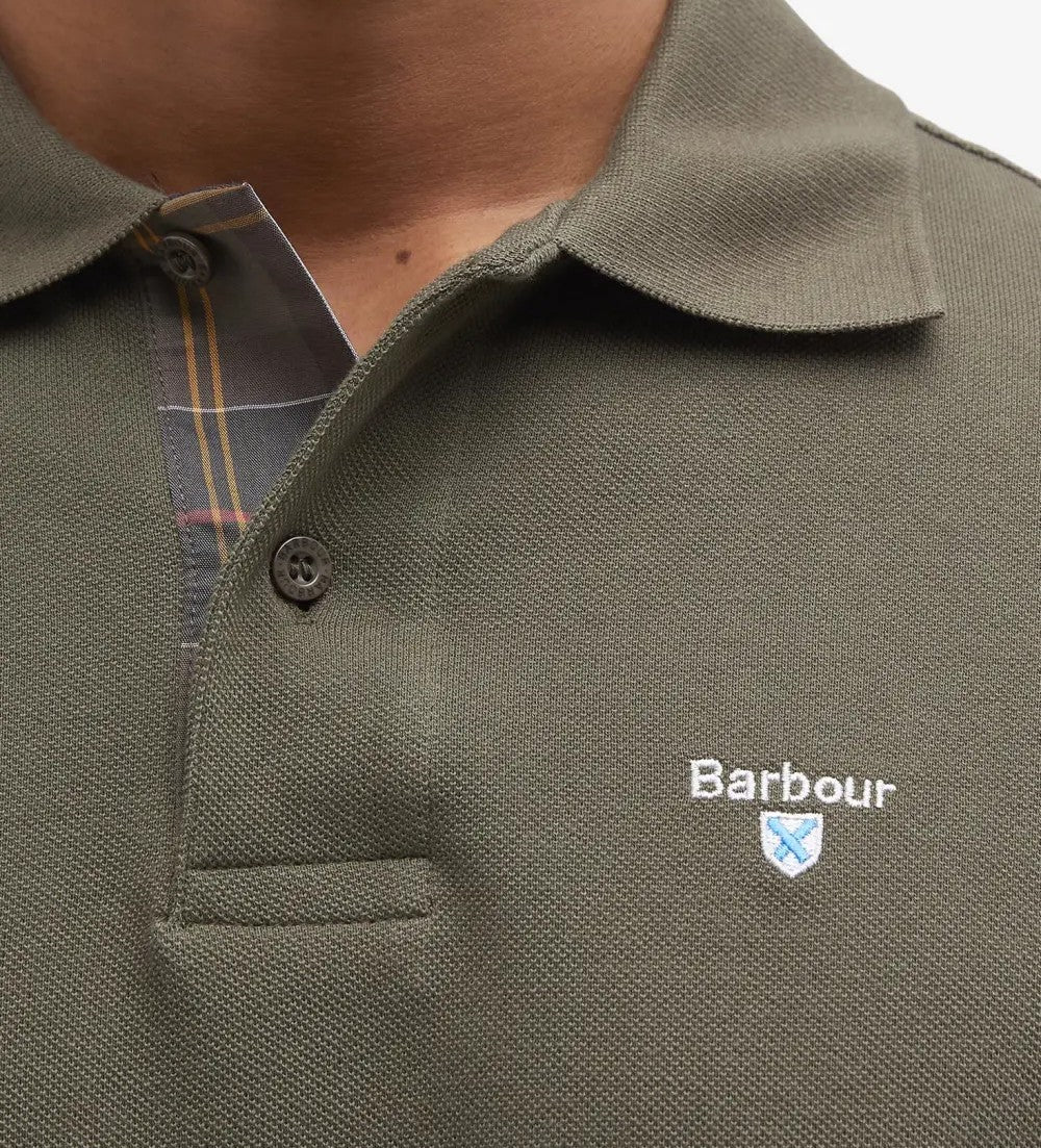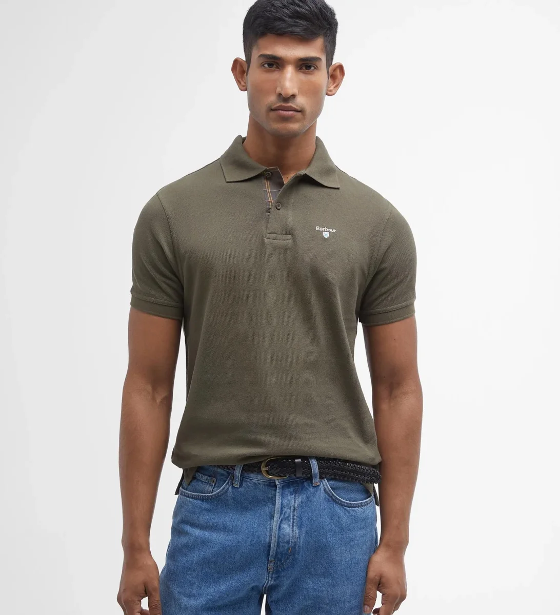 Polo uomo verde oliva scuro in cotone รจ caratterizzato da maniche corte, finiture tartan sul retro del collo e logo sul petto per un tocco di classe. Disponibile dalla taglia M alla XXL