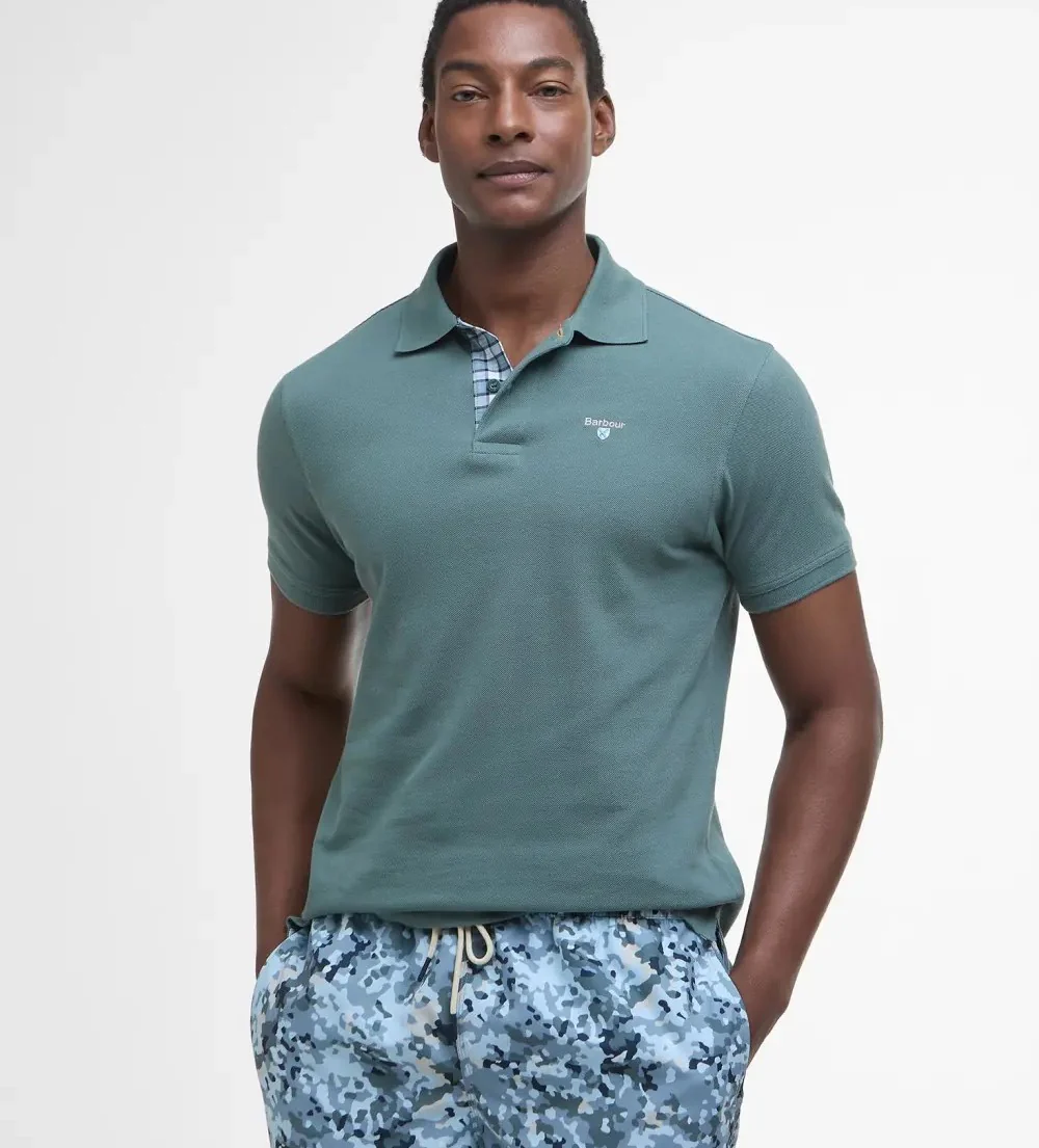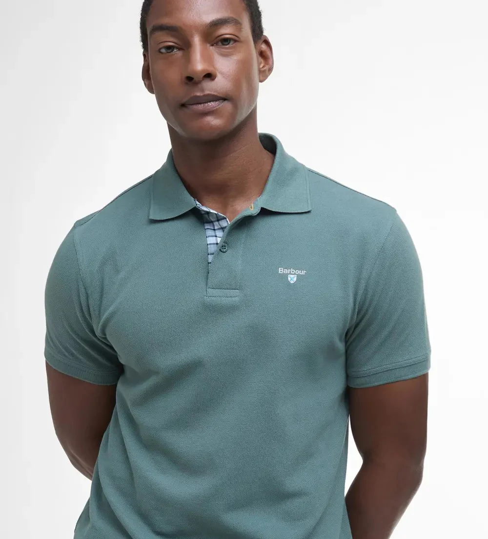 Polo uomo in cotone nel colore vintage teal รจ caratterizzato da maniche corte, finiture tartan sul retro del collo e logo sul petto per un tocco di classe. Disponibile dalla taglia M alla XL.