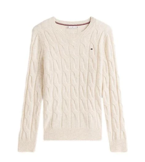 Pullover donna color latte realizzato in pura lana, con la classica lavorazione intrecciata con bandierina ricamata sul petto. Vestibilitร regolare.