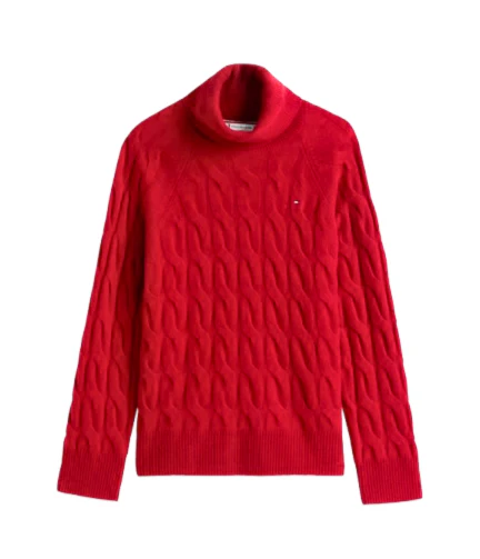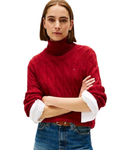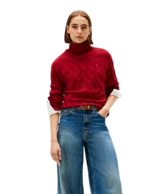Pullover dolcevita donna rosso in pura lana, caratterizzato dall’originale lavorazione intrecciata oversize, per uno stile moderno e inconfondibile, bandierina ricamata sul petto. Vestibilitร rilassata con maniche reglan.