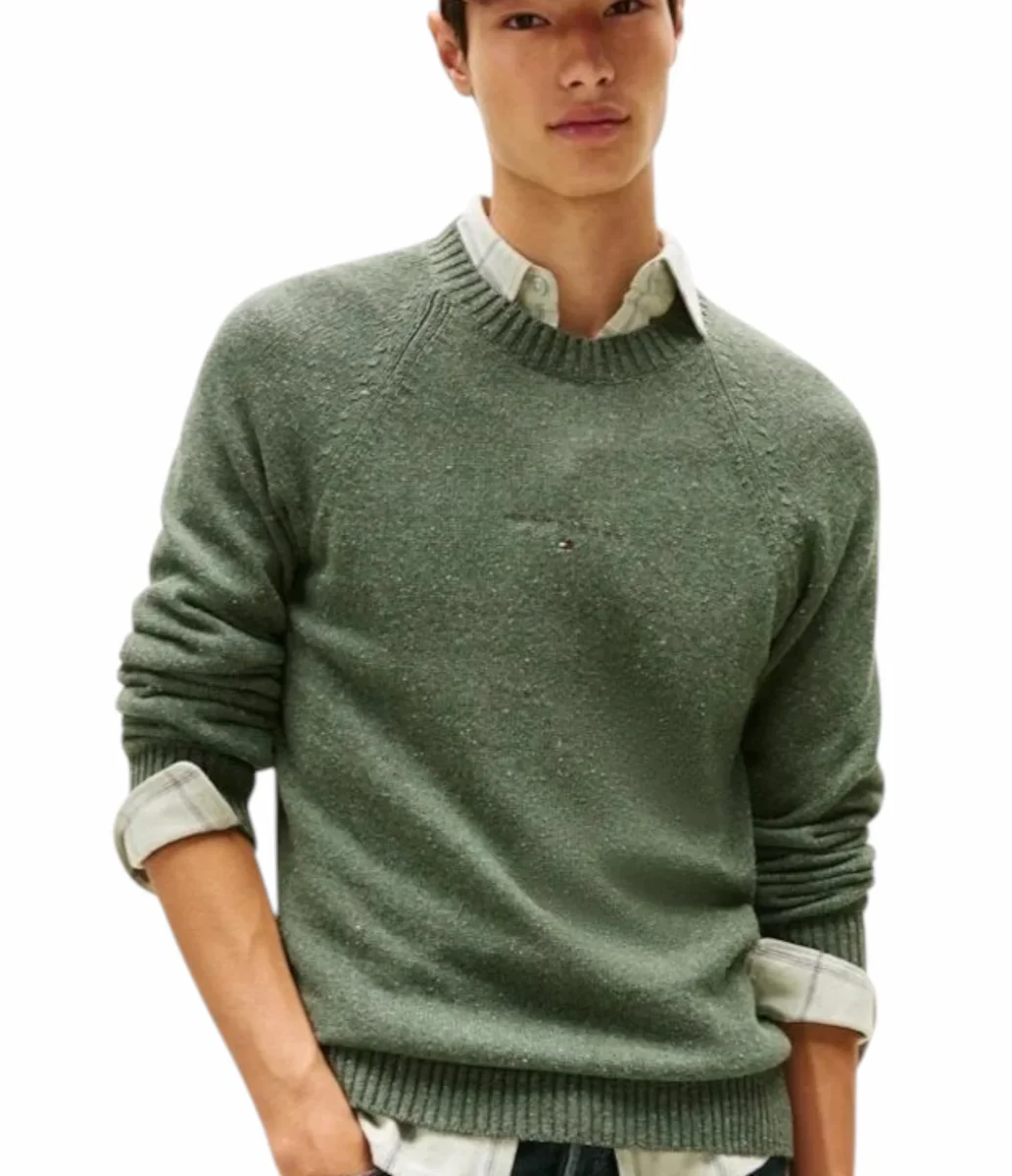 Pullover uomo verde in misto cotone
