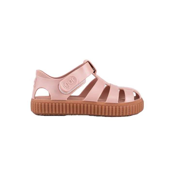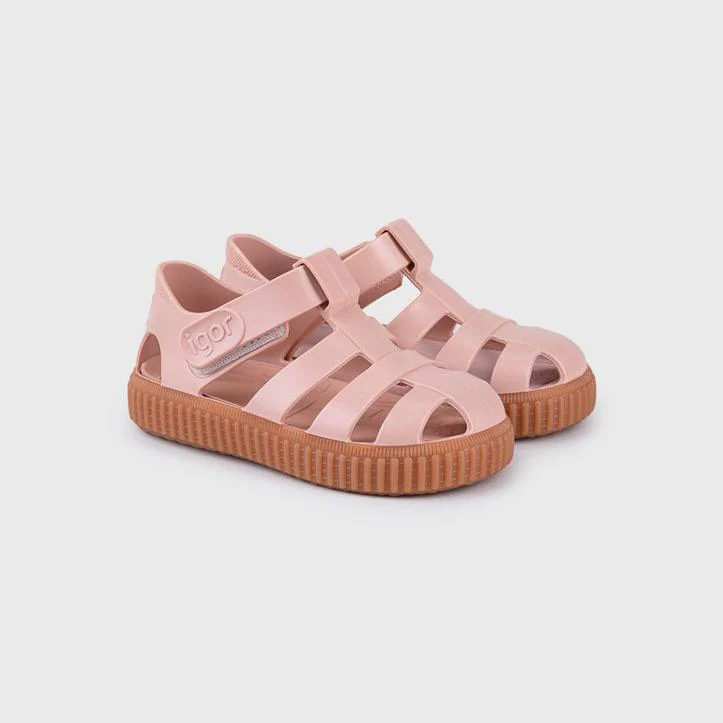 I sandali per bambini di Igor sono fabbricati in Spagna e sono essenziali per la spiaggia, la piscina o per godersi qualsiasi programma estivo. Sono flessibili e morbide, realizzate con almeno il 50% di PVC riciclato privo di ftalati e chiusura a strappo.