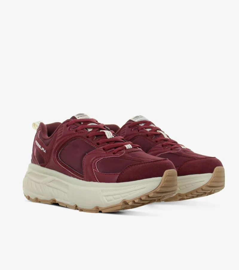 Scarpe donna bordeaux con tomaia realizzata in nylon e microfibra, con occhielli in metallo, intersuola in eva ultralight e battistrada in gomma.