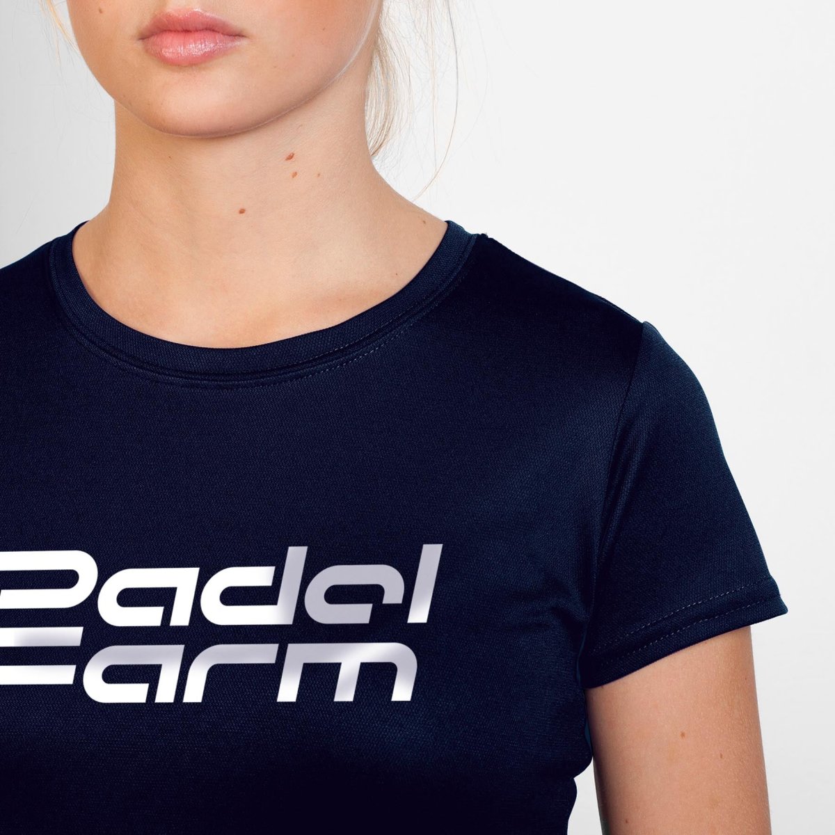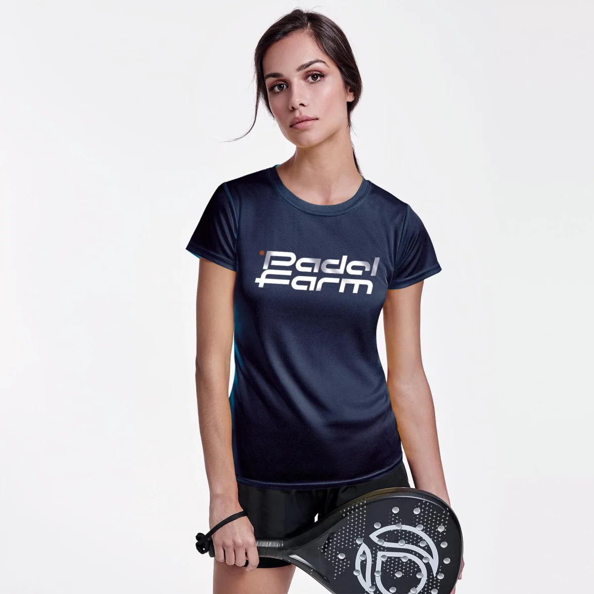 Maglietta girocollo donna manica corta raglan Padel Farm. Un design concepito e sviluppato esclusivamente per le donne. Una maglietta tecnica che ti dร  la libertร  di movimento sempre, a prescindere dello sport che si pratica.
