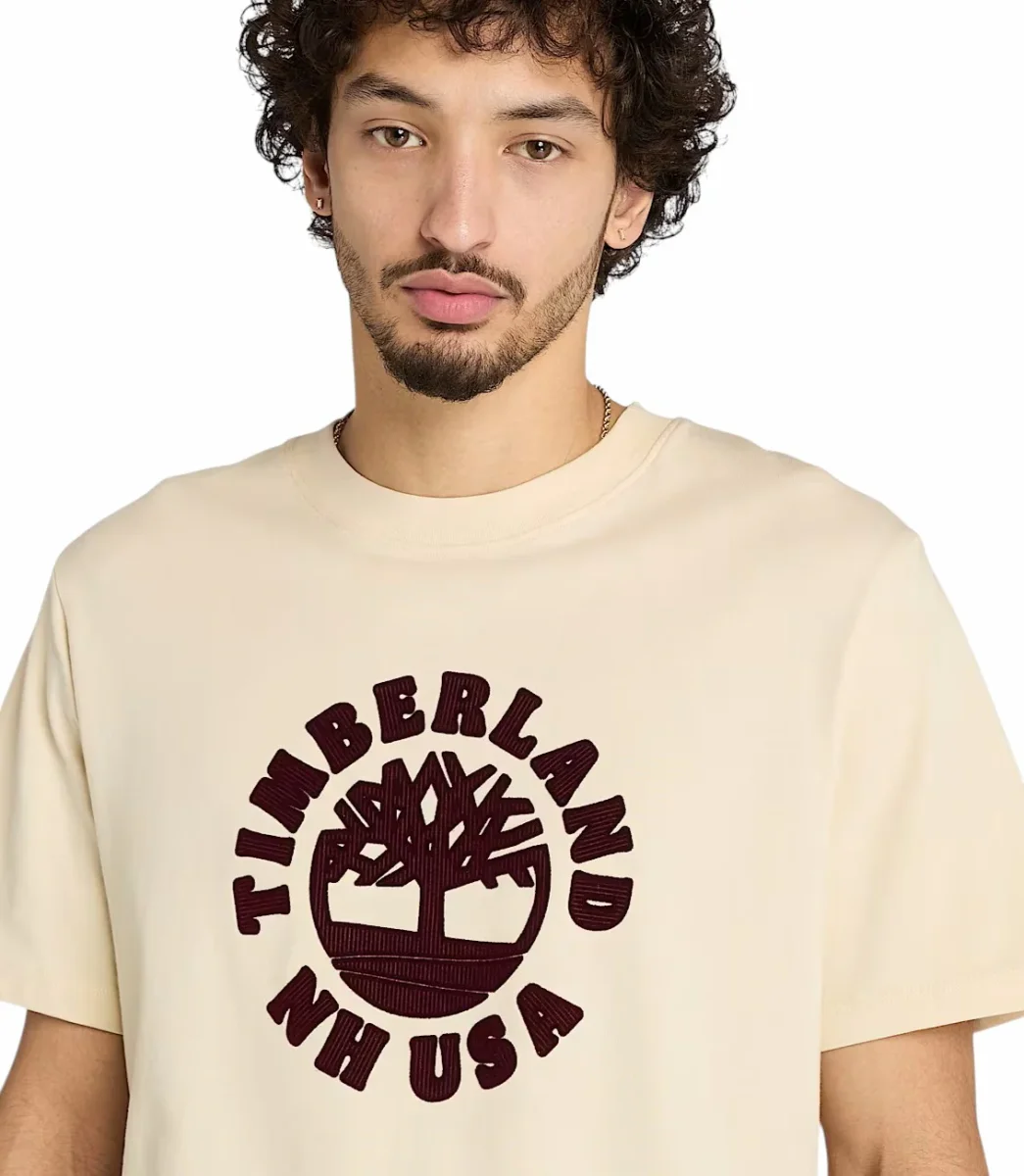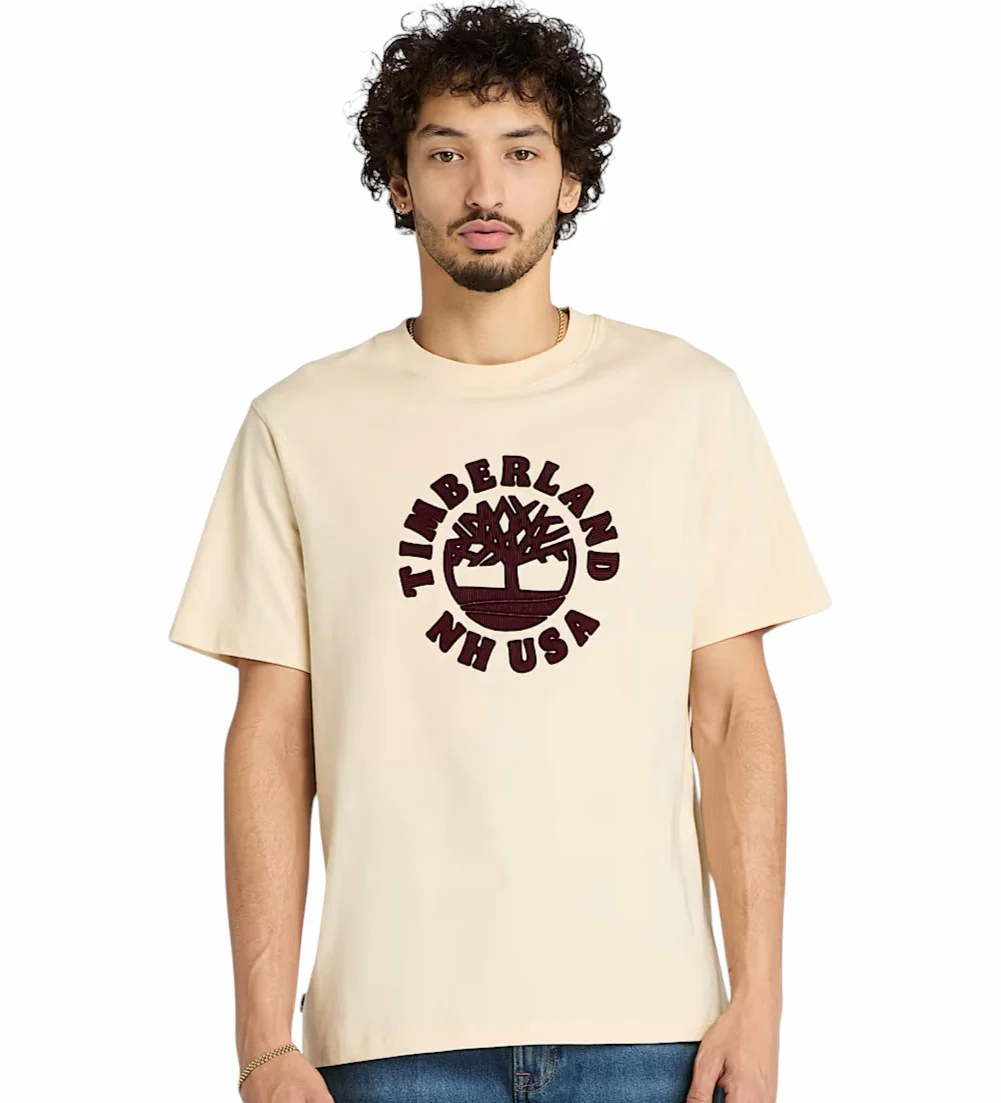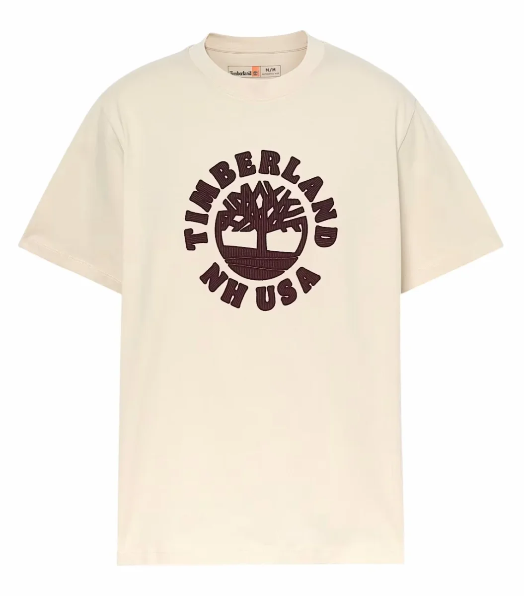 T-shirt uomo beige realizzata in cotone, modello a maniche corte dalla vestibilitร authentic con grafica sul davanti.