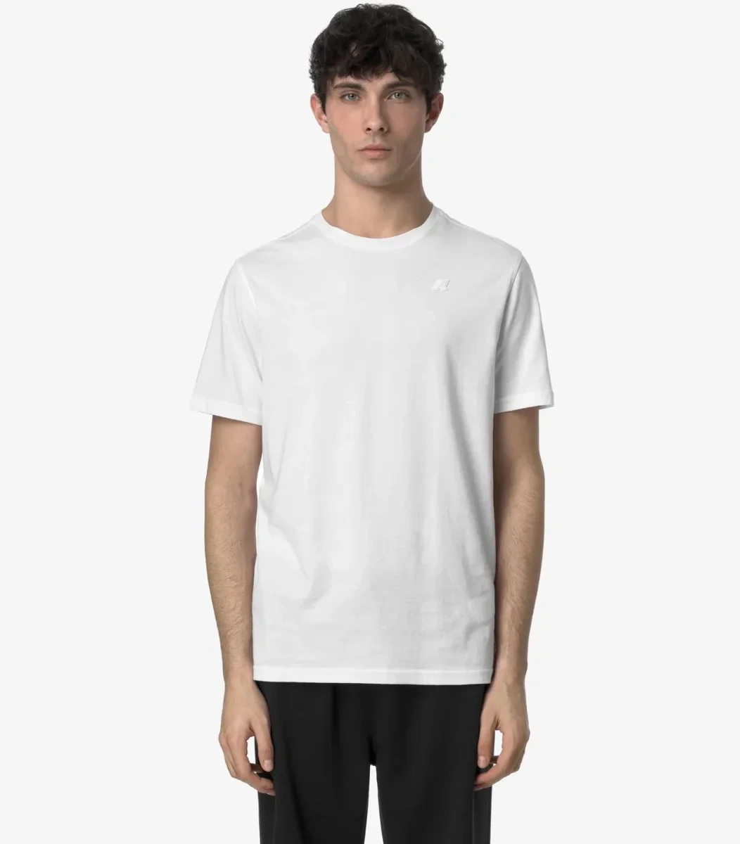 T-shirt da uomo bianca realizzata in morbido jersey di cotone. Un essenziale del guardaroba quotidiano dalla vestibilitร slim e contemporanea con collo a giro, maniche corte e logo sul petto.