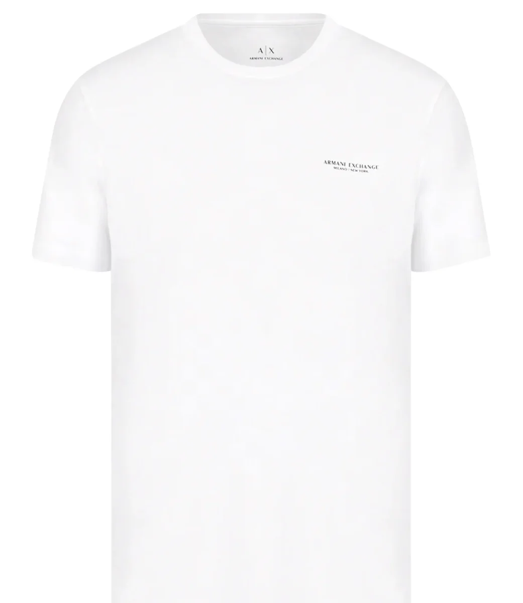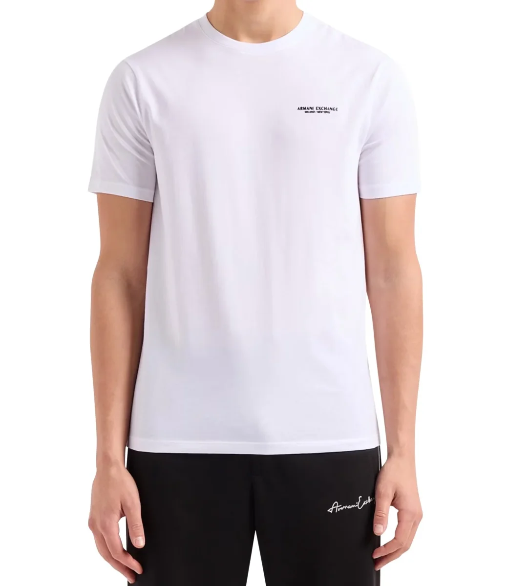 T-shirt uomo in cotone bianco con micro-logo stampato sul petto in nero. Design pulito ed essenziale, con girocollo a costine e maniche corte. Vestibilitร regolare.