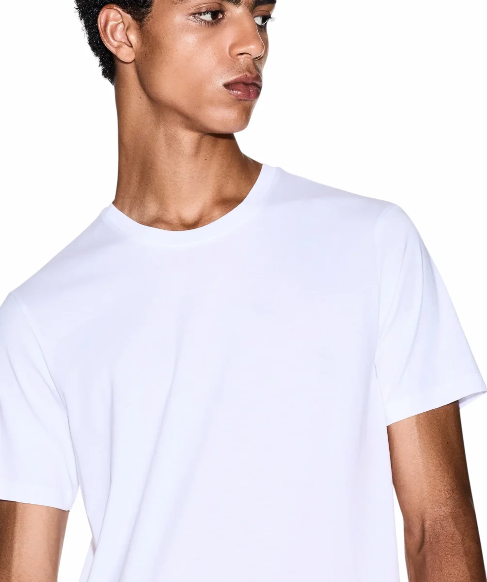 T-shirt uomo bianca, girocollo e maniche corte, realizzata in cotone. Il cotone Pima รจ uno dei migliori filati di cotone al mondo: ha una lucentezza naturale, รจ resistente all’usura e al pilling. Le t-shirt in cotone Pima sono quindi comode, traspiranti e resistenti.