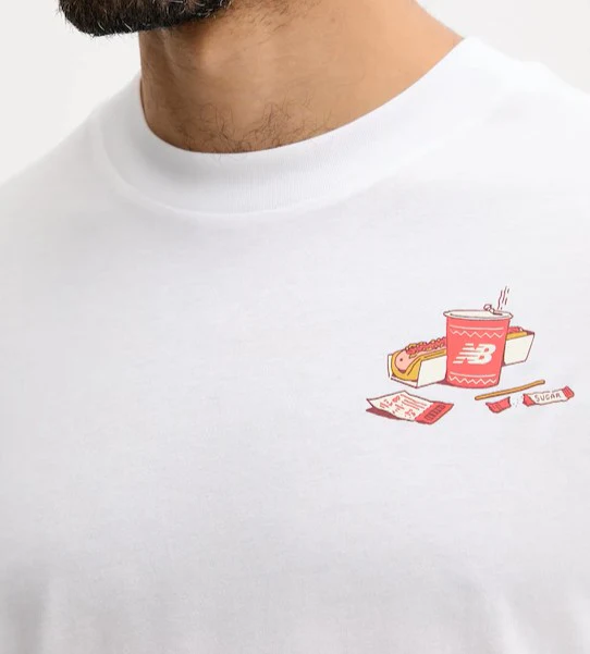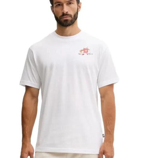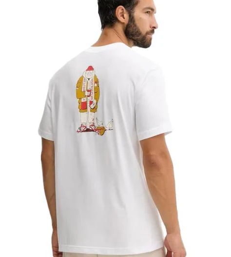 T-shirt uomo bianca realizzata in cotone, dal taglio comodo, presenta una grafica colorata e divertente.
