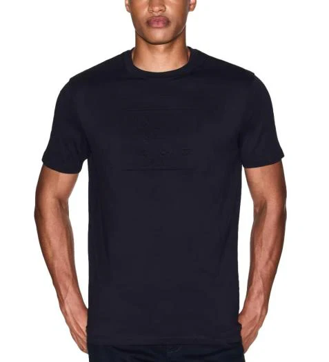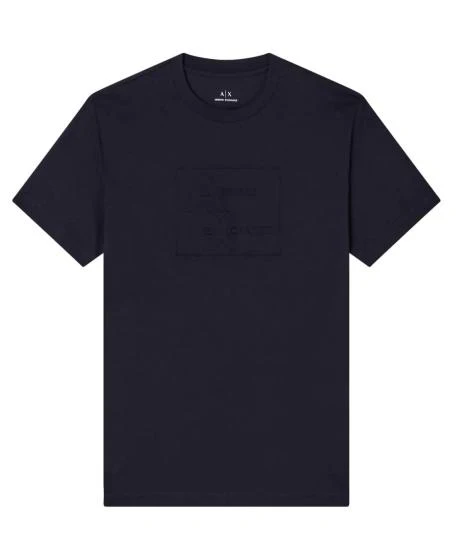 T-shirt uomo blu in cotone, modello girocollo e manica corta dalla vestibilitร regolare, con logo in rilievo al centro del petto .
