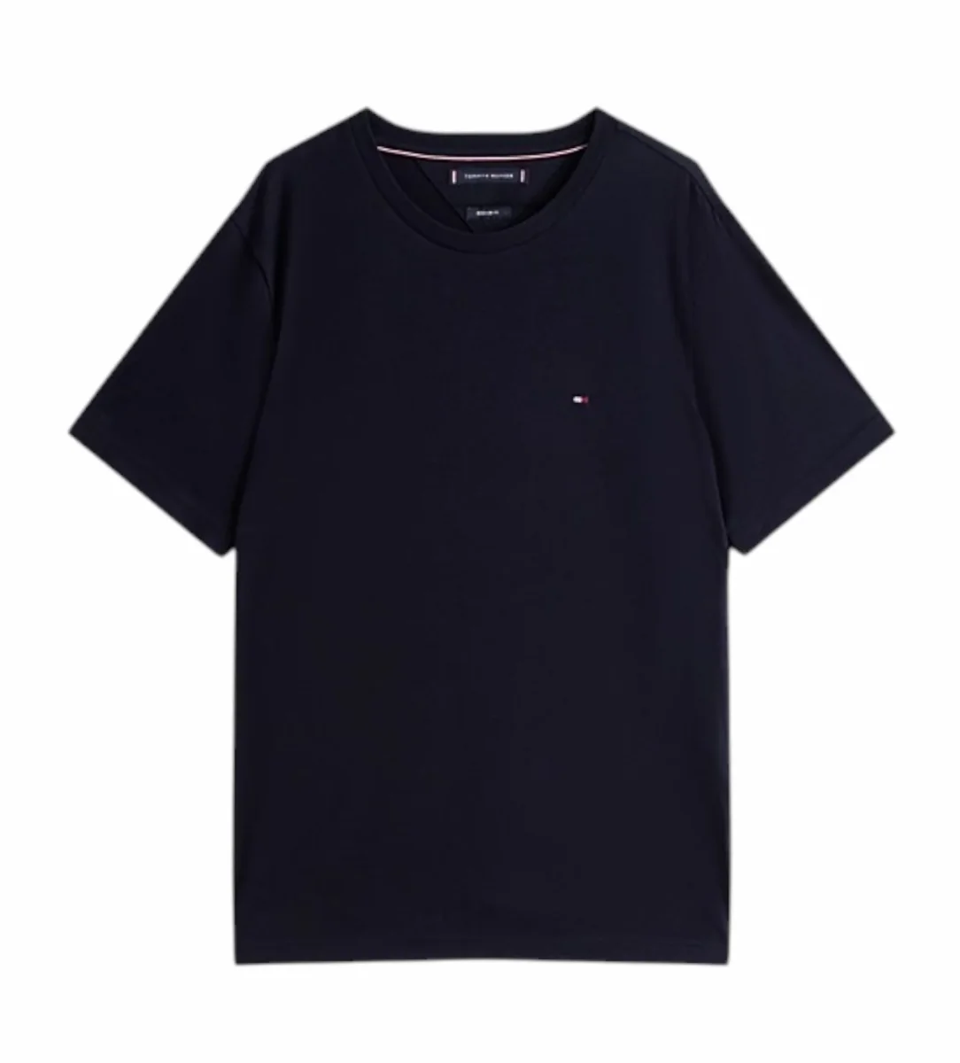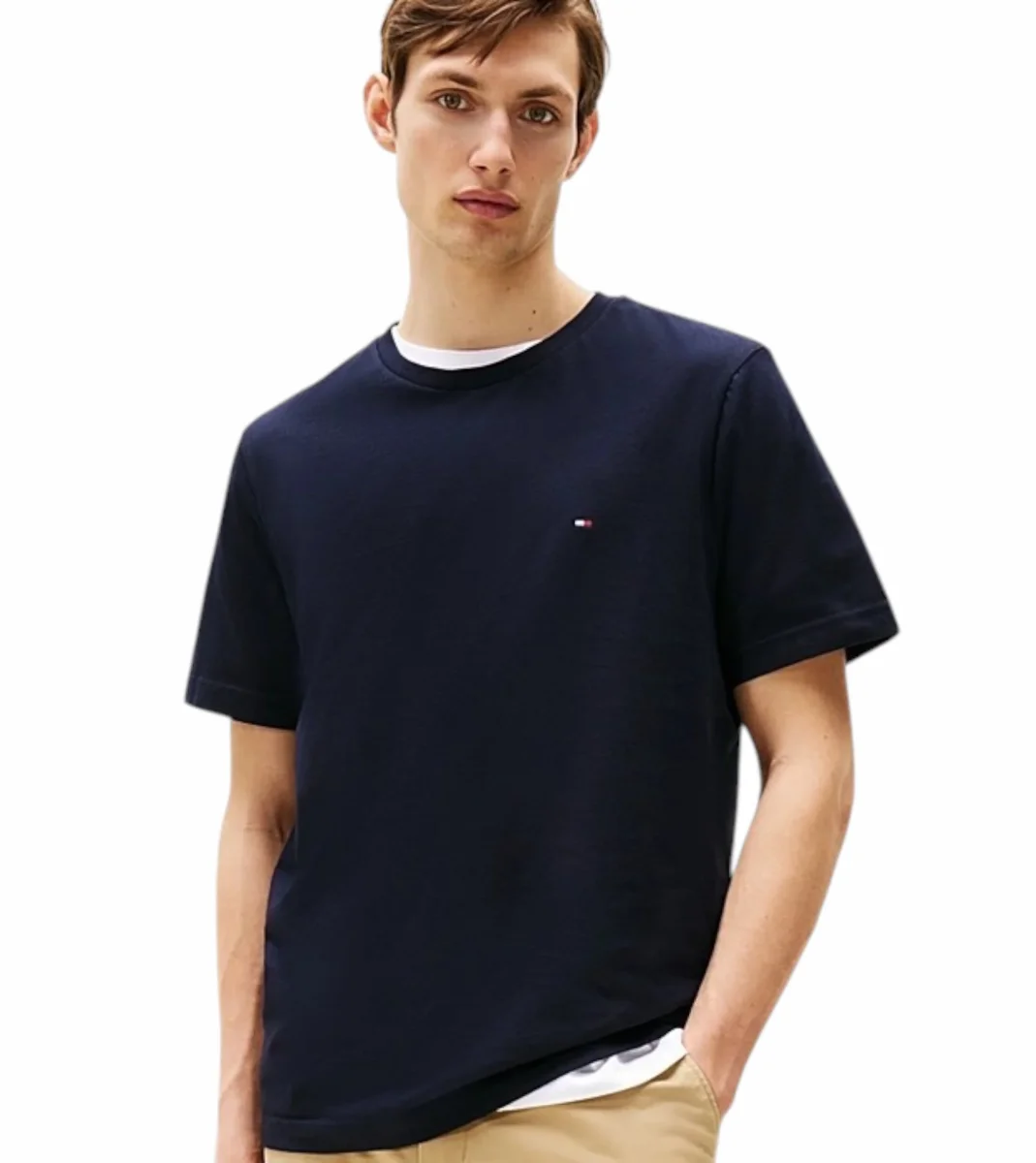 T-shirt girocollo uomo, blu navy in puro cotone con bandierina ricamata sul petto. Vestibilitร regolare.