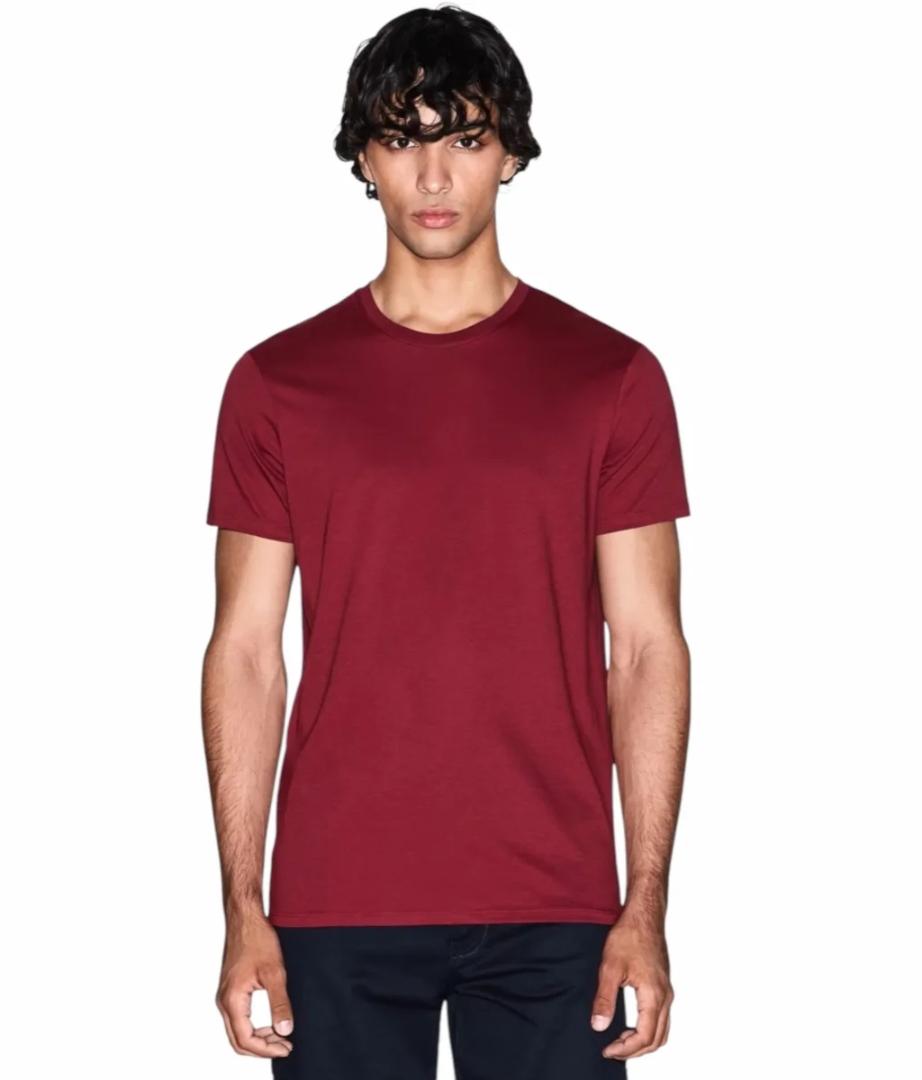 T-shirt uomo burgundy, girocollo e maniche corte, realizzata in cotone. Il cotone Pima รจ uno dei migliori filati di cotone al mondo: ha una lucentezza naturale, รจ resistente all’usura e al pilling. Le t-shirt in cotone Pima sono quindi comode, traspiranti e resistenti.
