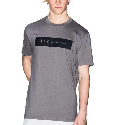T-shirt uomo grigia in cotone leggero, dalla texture liscia e dalla vestibilitร fluida. Presenta il logo a contrasto all’interno di un riquadro che aggiunge un dettaglio distintivo.