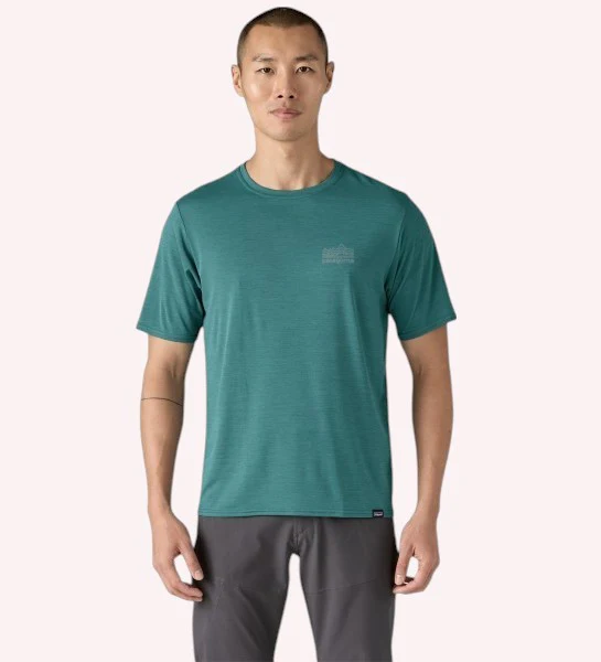 T-Shirt uomo verde realizzata in tessuto traspirante Capileneยฎ Cool DailyTecnica, leggera e versatile: la t-shirt ideale per ogni avventura, si asciuga rapidamente ed รจ perfetta per sport, viaggi o uso quotidiano. Con grafica ispirata alla natura e trattamento anti-odore HeiQยฎ, offre comfort e stile sostenibile firmato Patagonia. Taglio regolare per una vestibilitร versatile. Disponibile nelle taglie dalla XS alla XXL.
