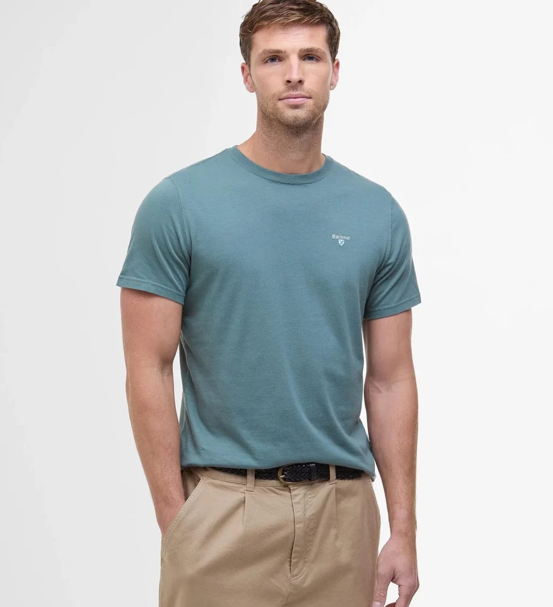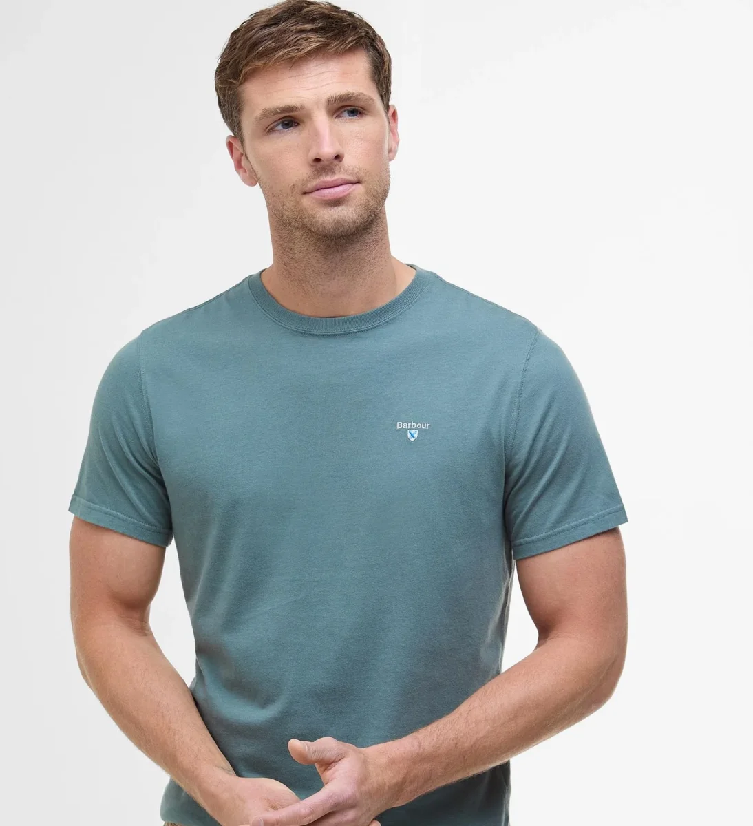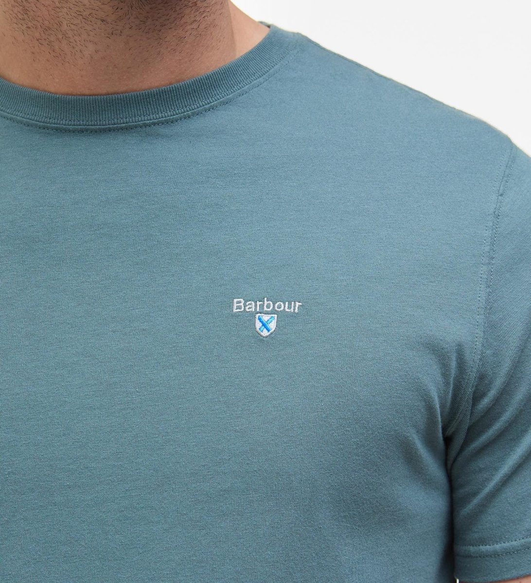 T-Shirt uomo vintage teal in cotone presenta una scollatura a costine, finiture in tartan dietro al collo allโinterno e il logo dello scudo ricamato sul petto. Disponibile nelle taglie dalla L alla XXXL.
